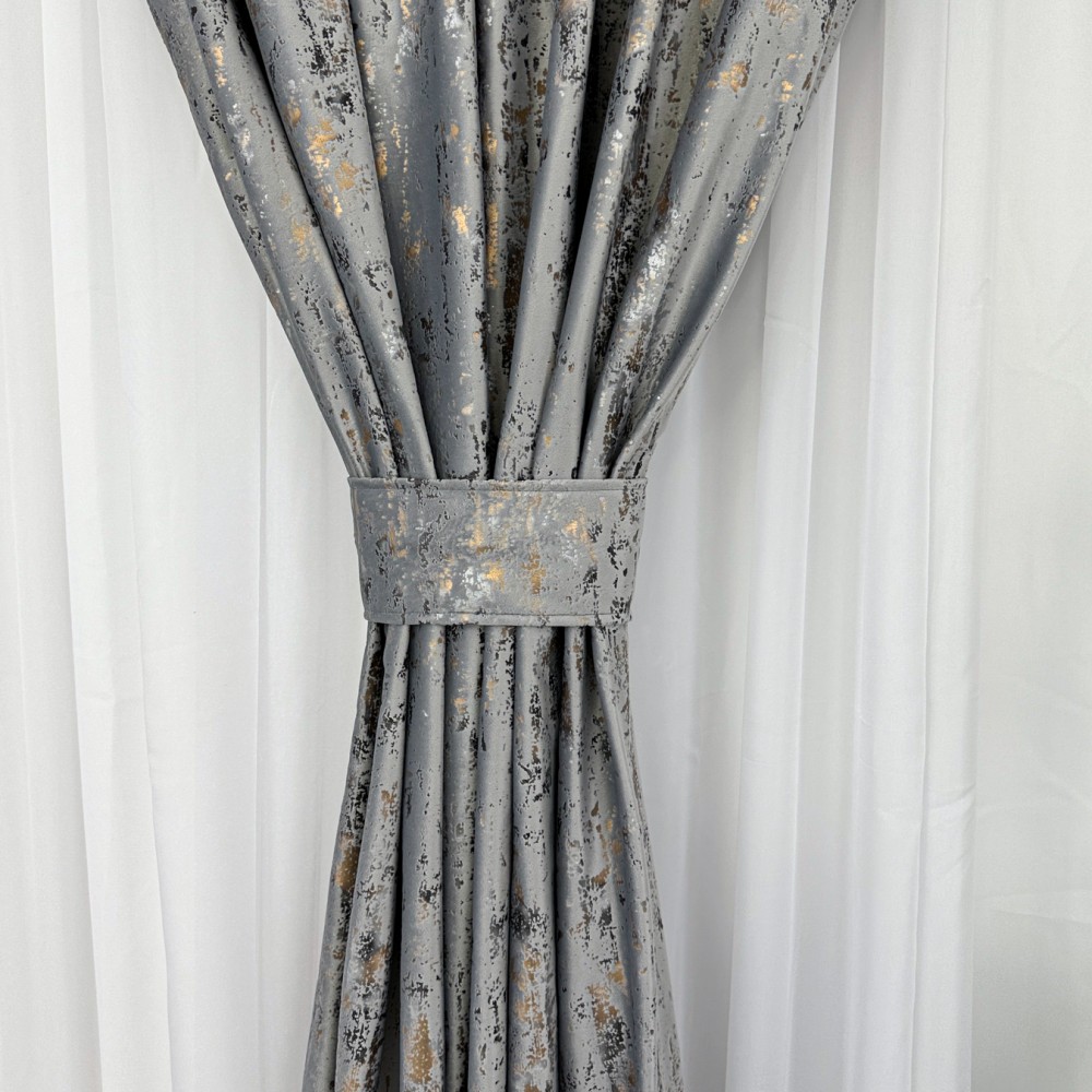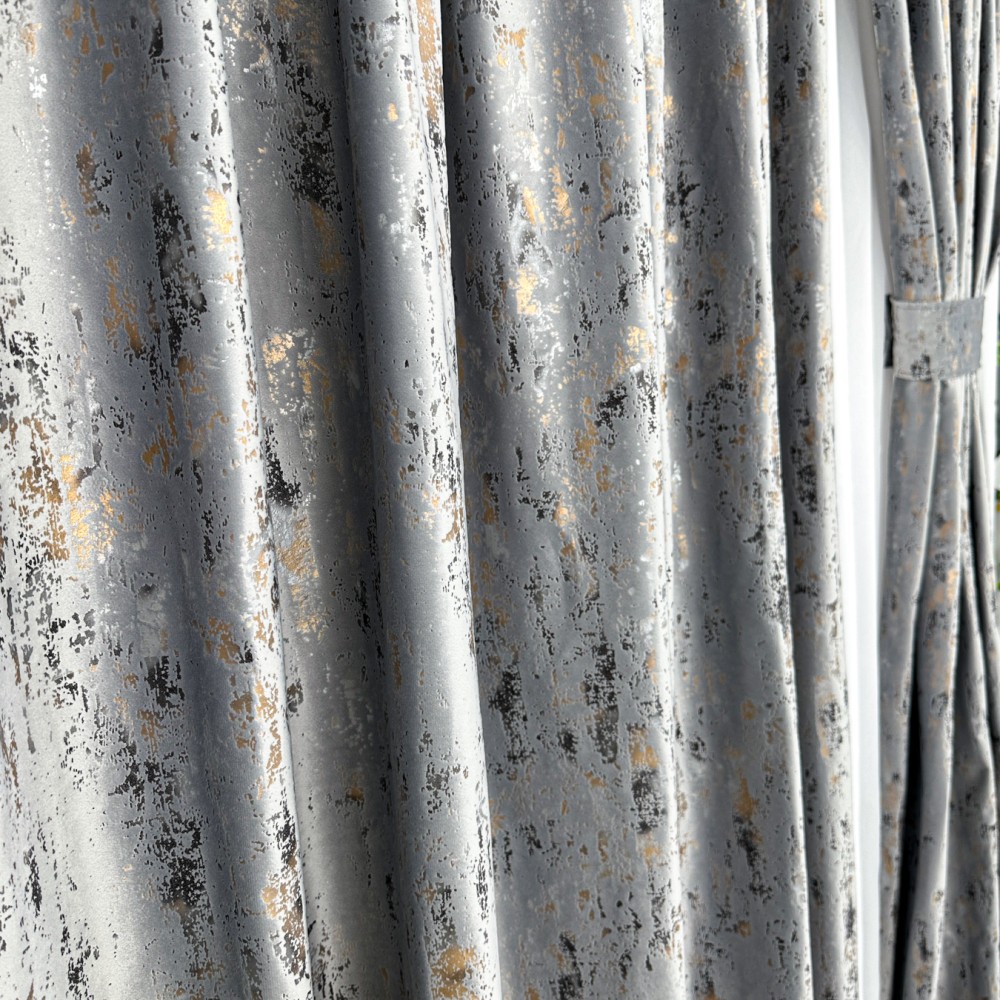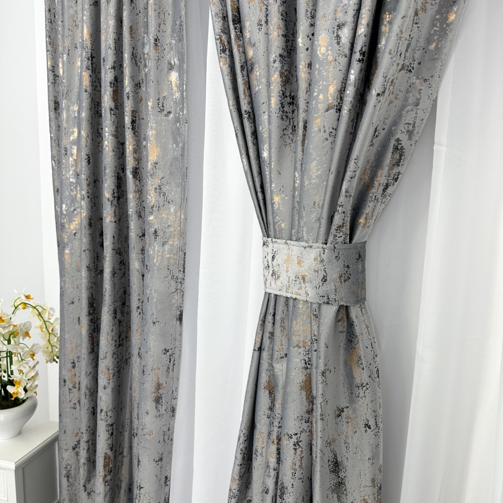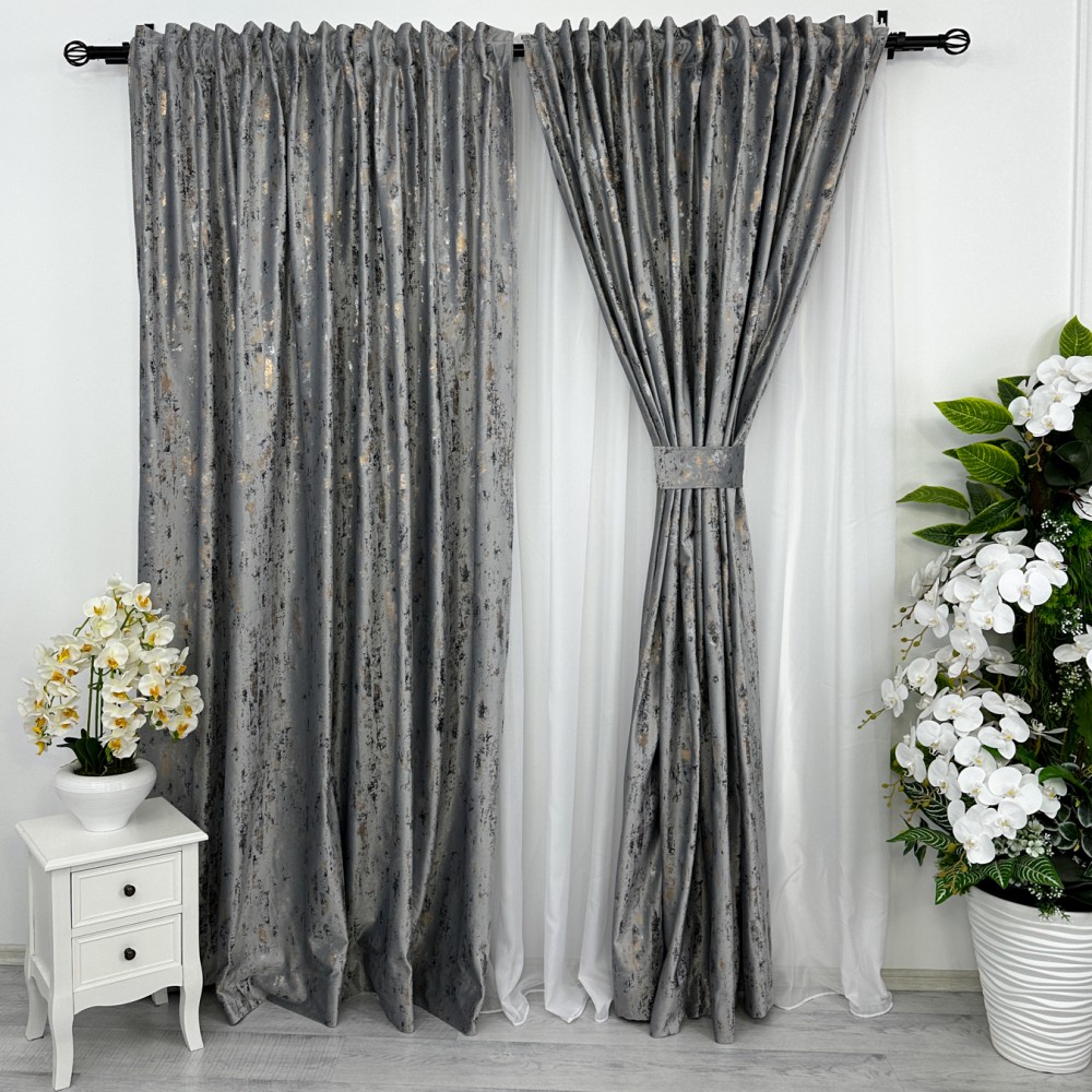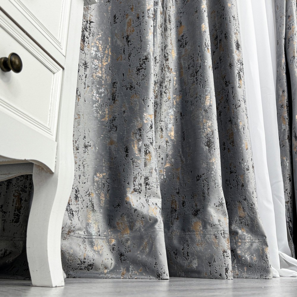 Set 2 bucati de Draperie Catifea cu insertii aurii, Gri, 200cm latime x 200cm inaltime, cu rejansa pt sina, CumparaMisim, cod produs: BDRs20h