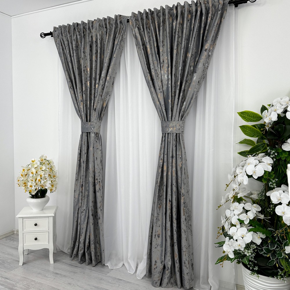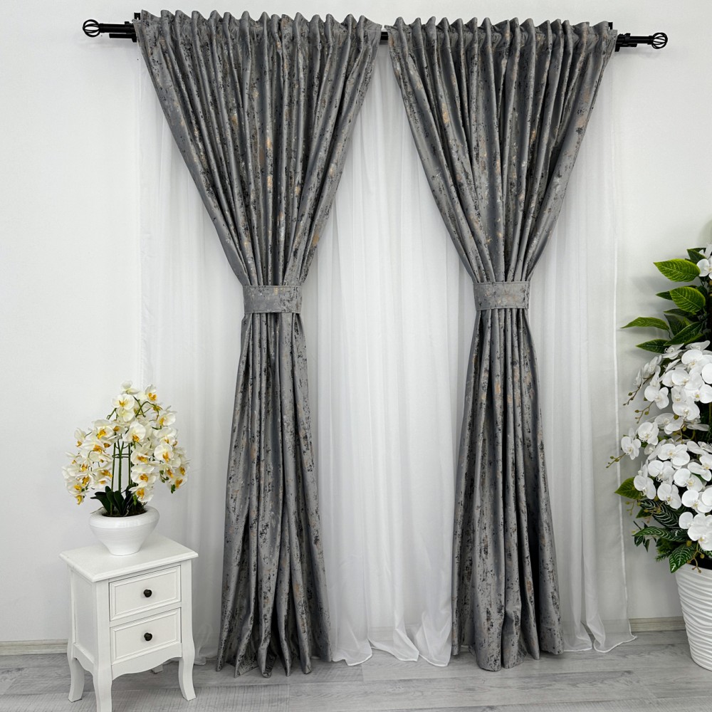 Aceste draperii nu sunt doar un element de decor, ci și o declarație a bunului gust și a stilului sofisticat al proprietarului. Cu o astfel de alegere, încăperea devine cu adevărat remarcabilă, transformând orice spațiu într-un sanctuar al luxului și al eleganței.