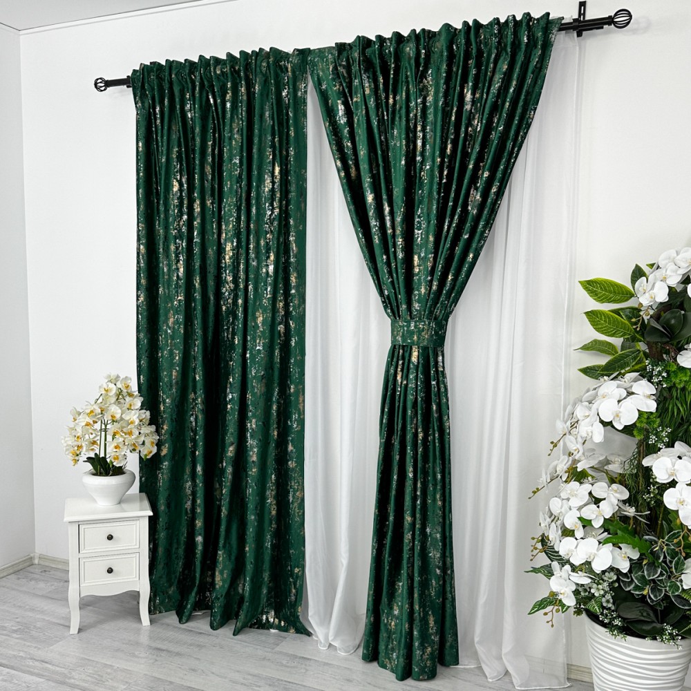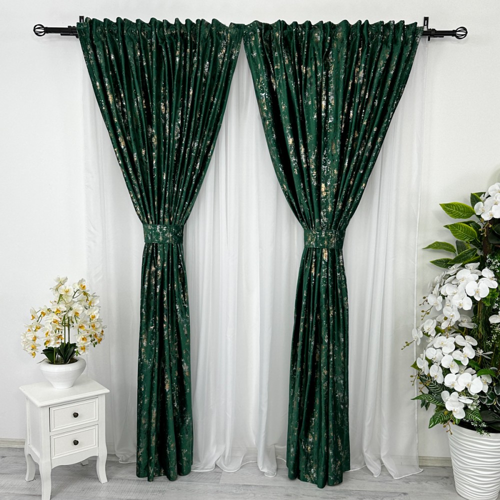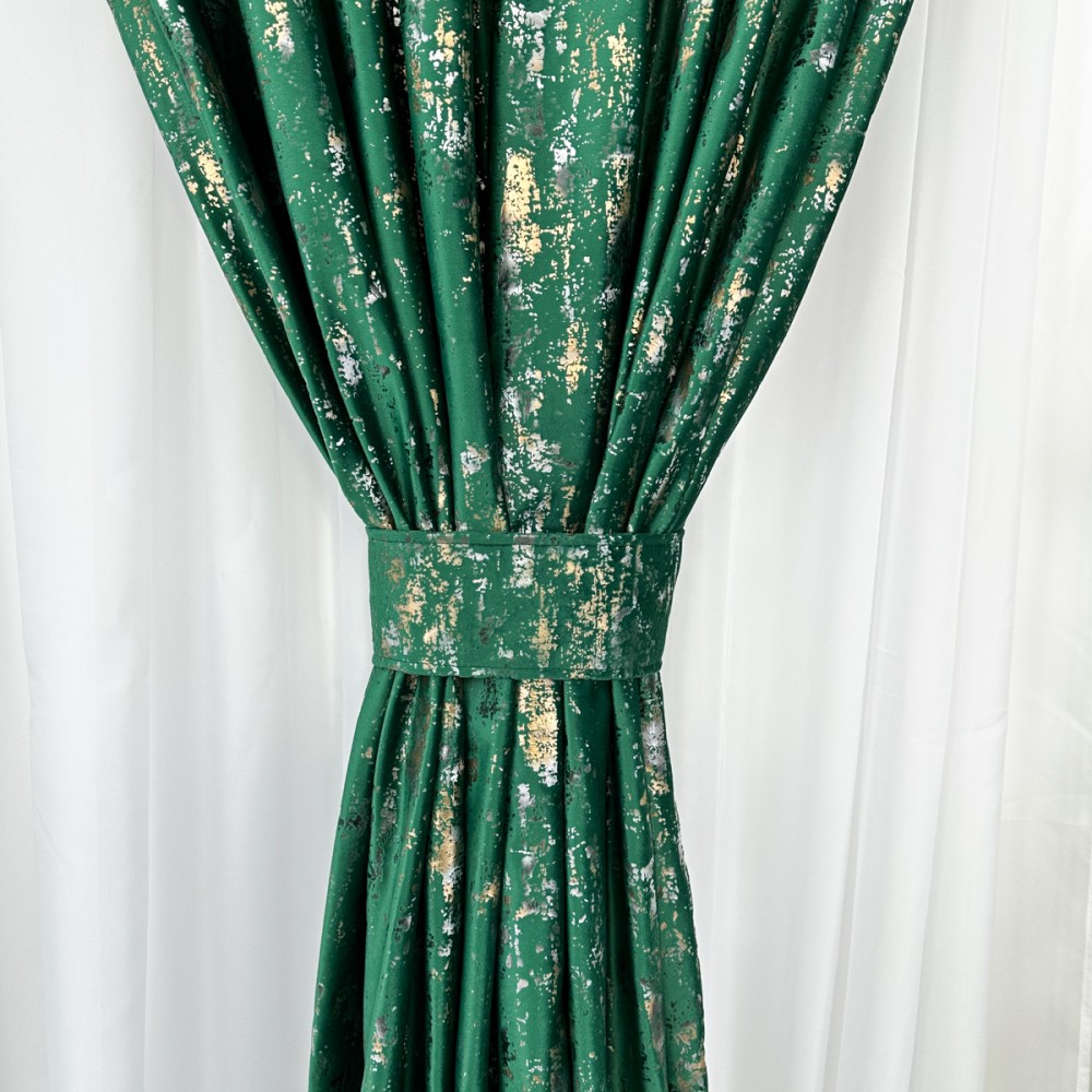 Set 2 bucati de Draperie Catifea cu insertii aurii, Verde Smarald, 1.4m latime x 2.1m inaltime, cu rejansa pt sina, CumparaMisim, cod produs: BDRs15c