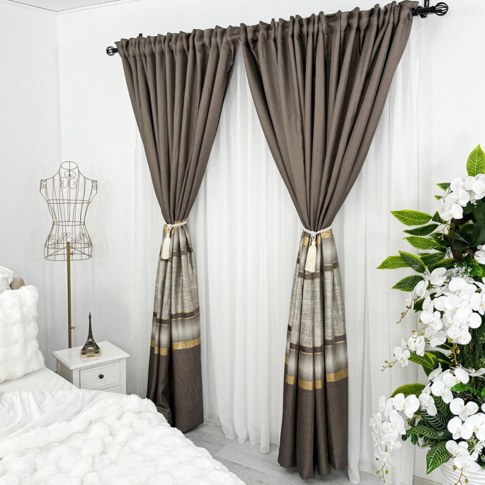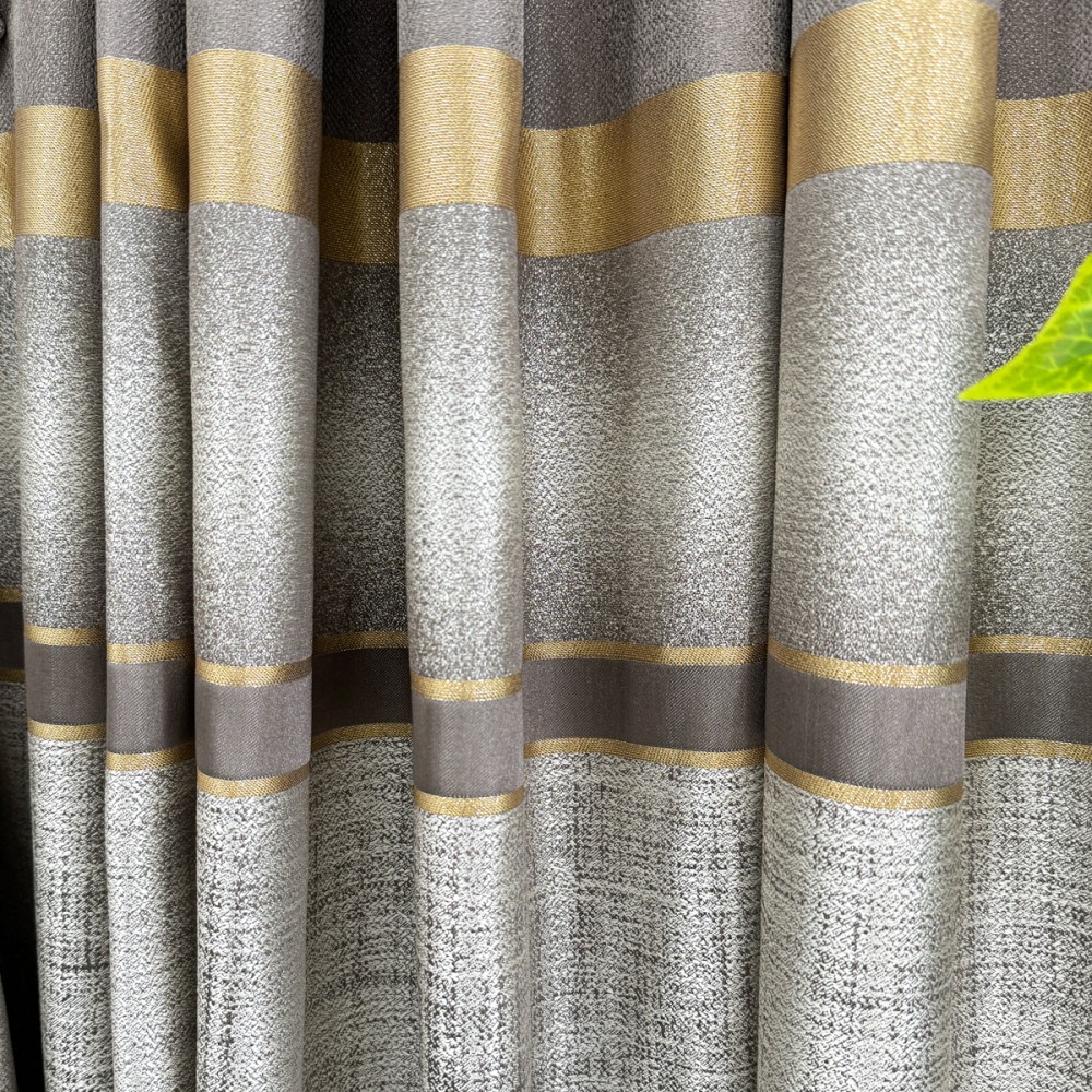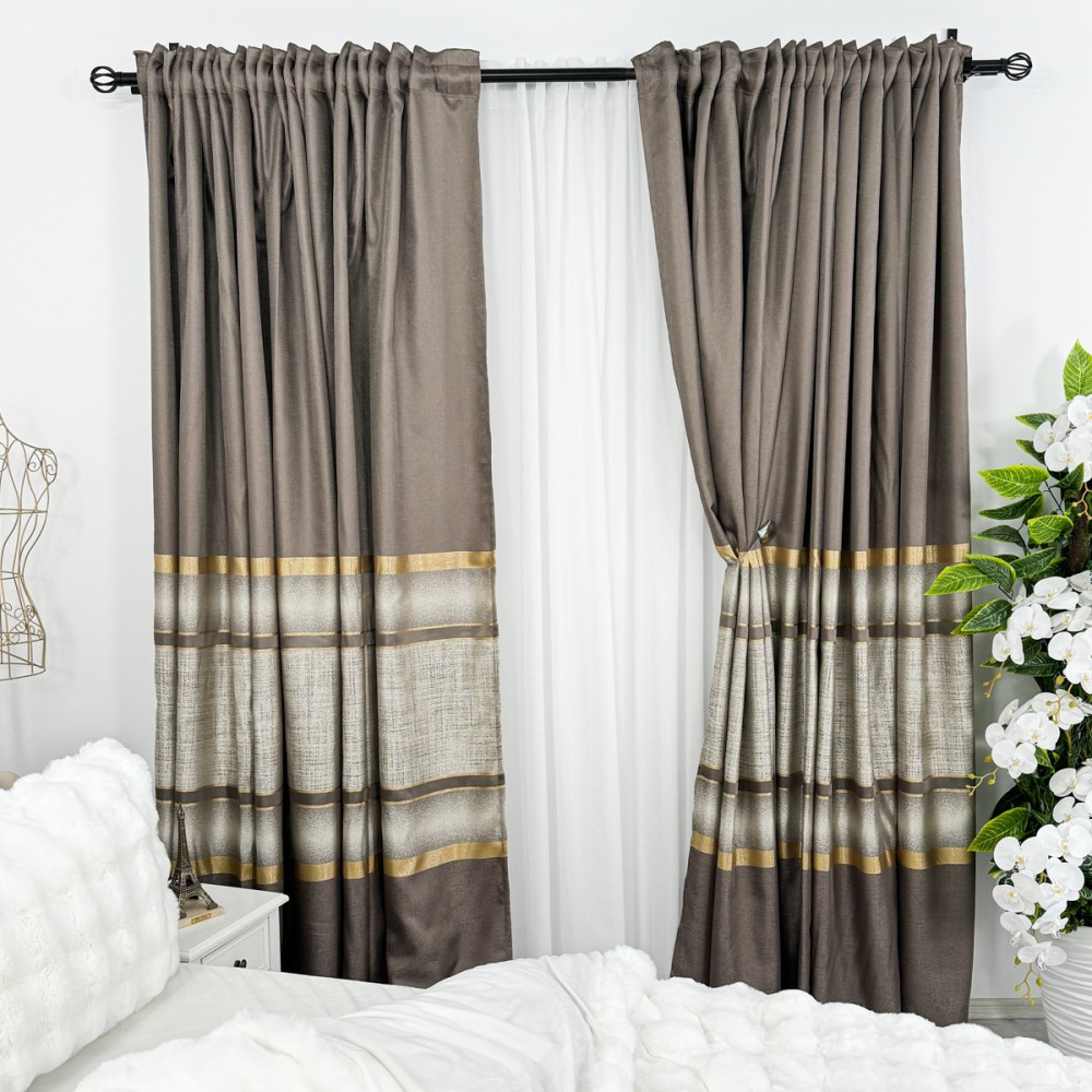 Ceea ce face draperiile cu adevărat remarcabile sunt detaliile aurii. Aceste insertii metalizate adaugă un element de strălucire și glamour, creând un contrast elegant cu textura mată a materialului. Fie că sunt plasate într-un living, într-un dormitor sau într-o sală de mese, draperiile cu insertii aurii atrag atenția și conferă o notă de opulență.