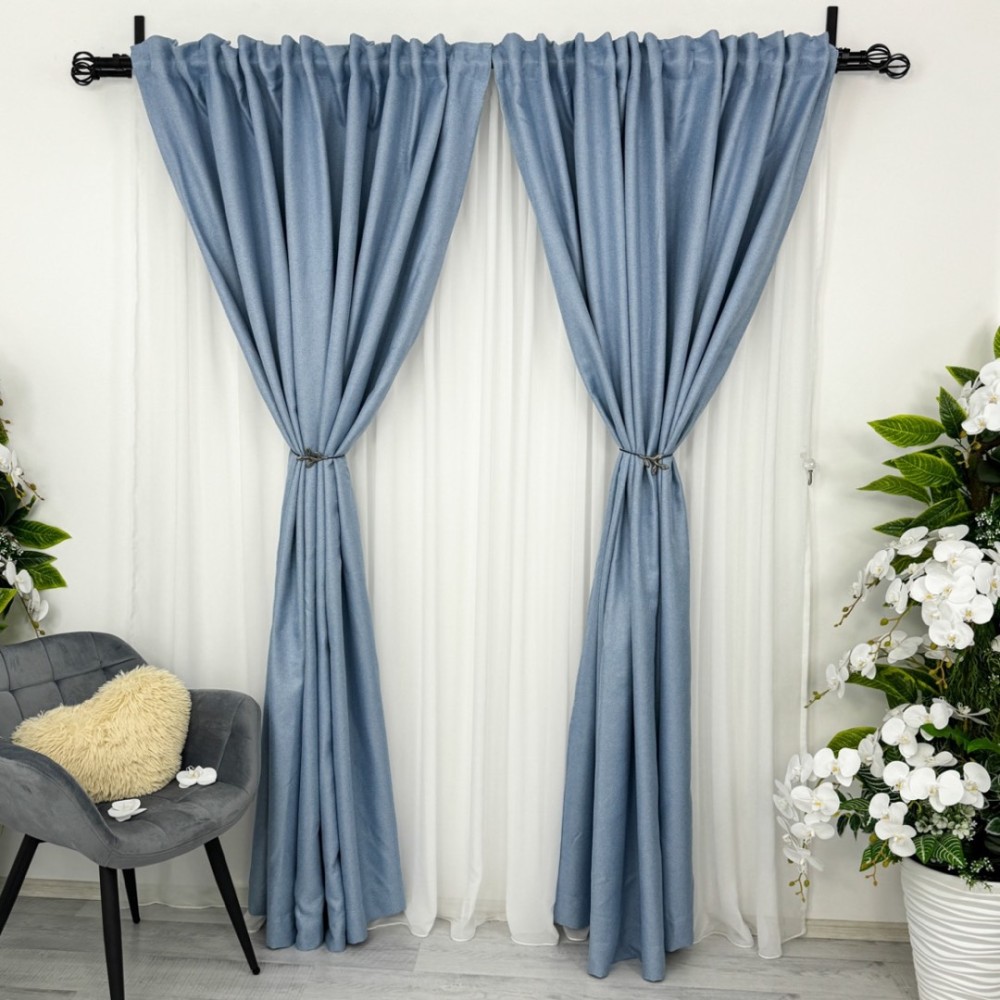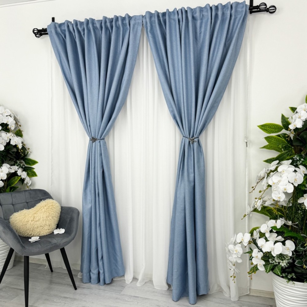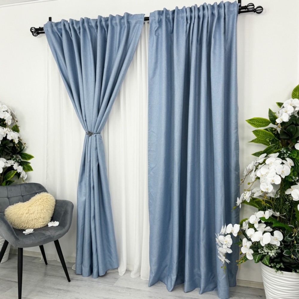 Set 2 bucati de Draperie HoReCa TEXTURATA tip IN, Bleu Ciel- 200cm latime x 232cm inaltime, cu rejansa pt bara, CumparaMisim, cod produs: CSR-DRs208A