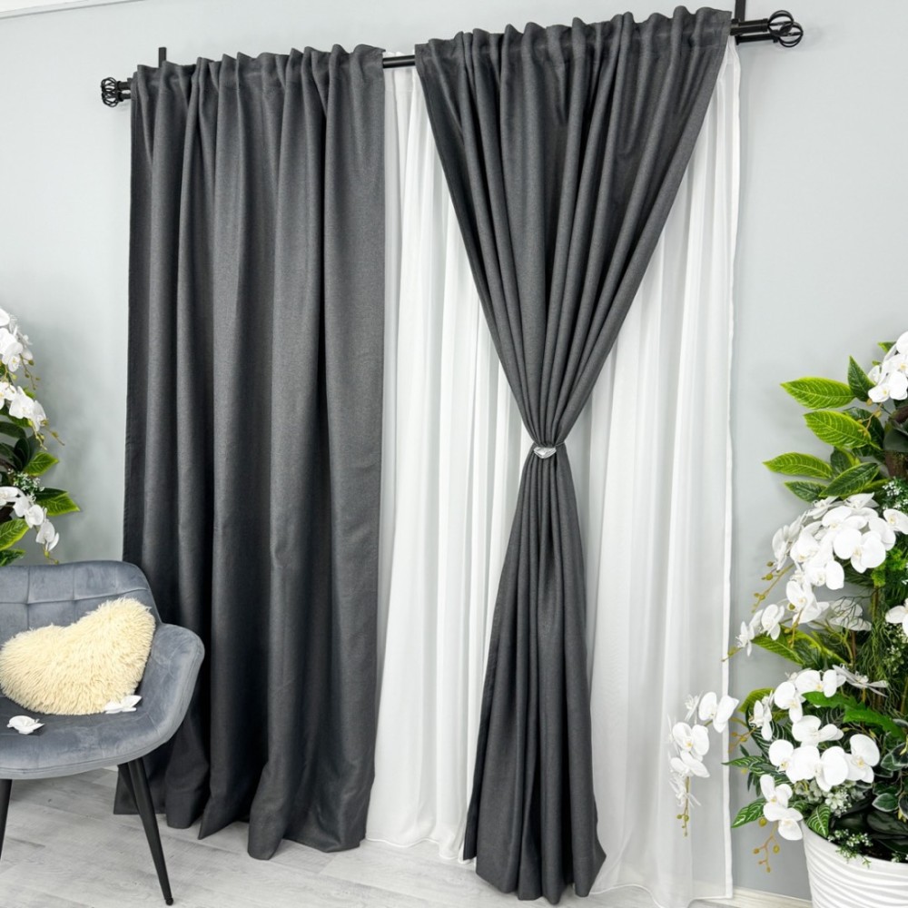 1. Textură tip sac: Această draperie este confecționată dintr-un material cu textură tip sac, care oferă un aspect deosebit și o senzație plăcută la atingere. Textura sa unică adaugă o notă de originalitate și rafinament în orice încăpere.