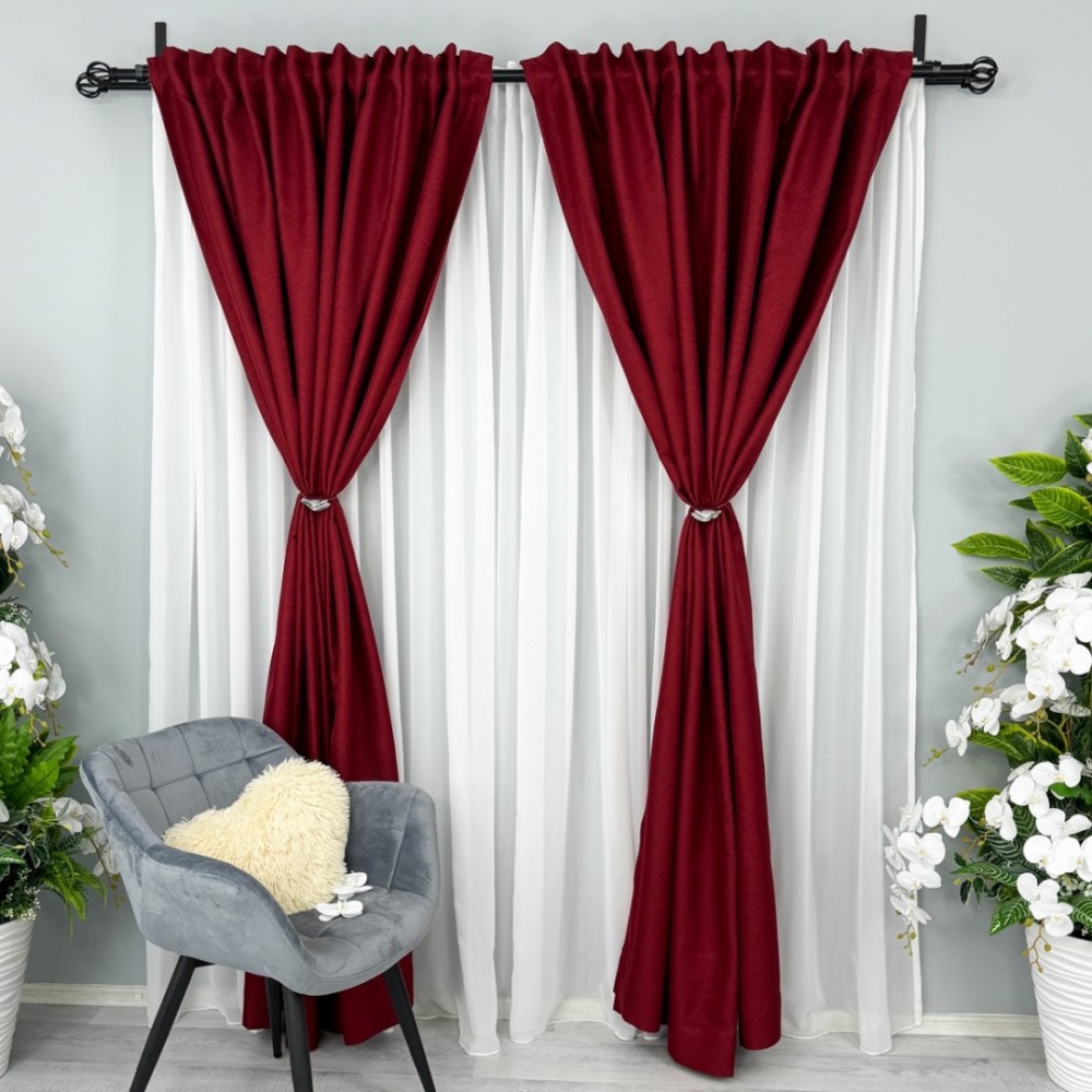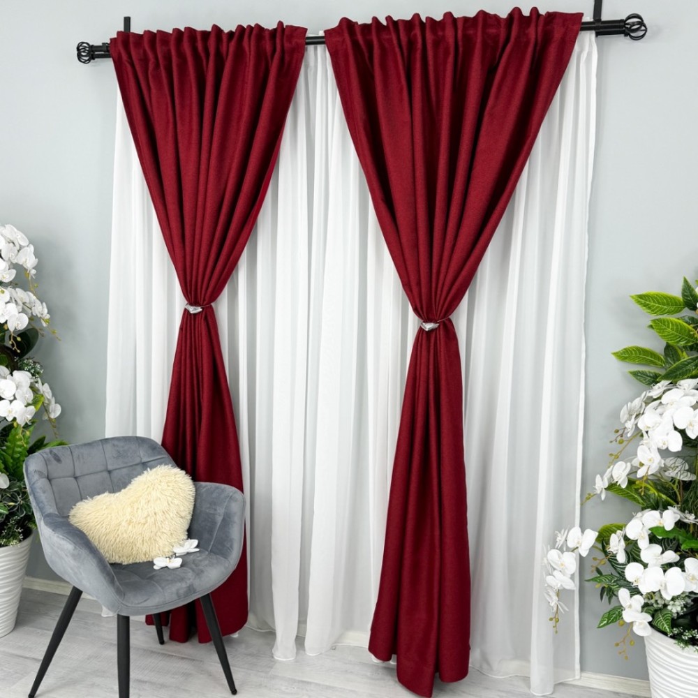 Set 2 bucati de Draperie HoReCa TEXTURATA tip IN, Rosu, 140cm latime x 270cm inaltime, cu rejansa pt bara, CumparaMisim, cod produs: CSR-DRs212A