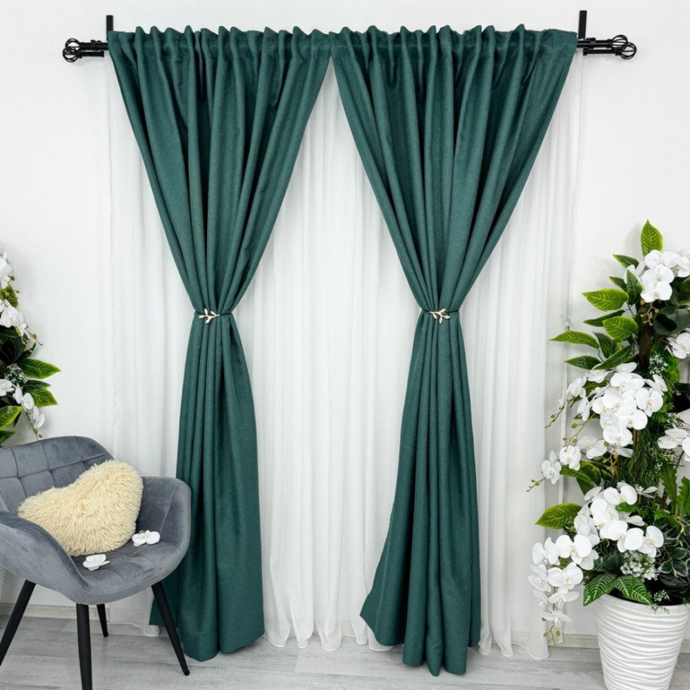 Set 2 bucati de Draperie HoReCa TEXTURATA tip IN, Verde-200cm latime x 232cm inaltime, cu rejansa pt bara, CumparaMisim, cod produs: CSR-DRs207A