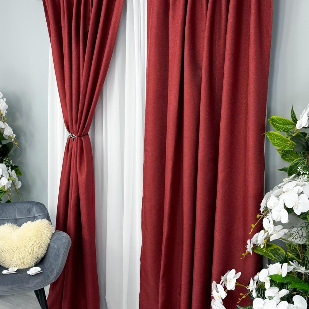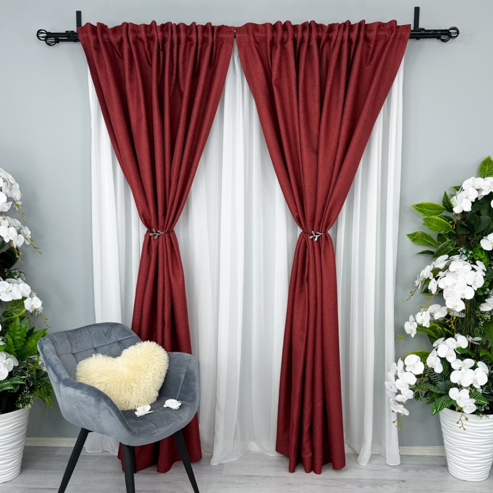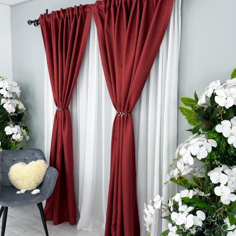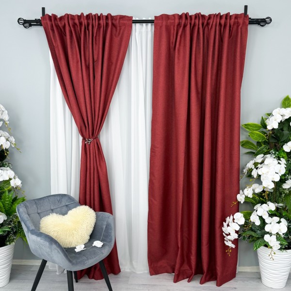 Set 2 bucati de Draperie HoReCa TEXTURATA tip IN, Visiniu, 200cm latime x 232cm inaltime, cu rejansa pt bara, CumparaMisim, cod produs: CSR-DRs221A