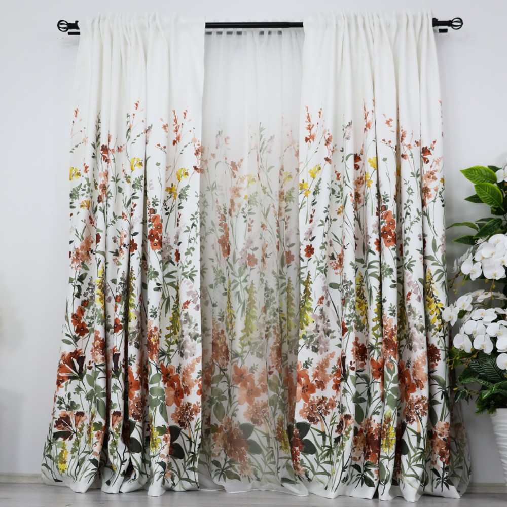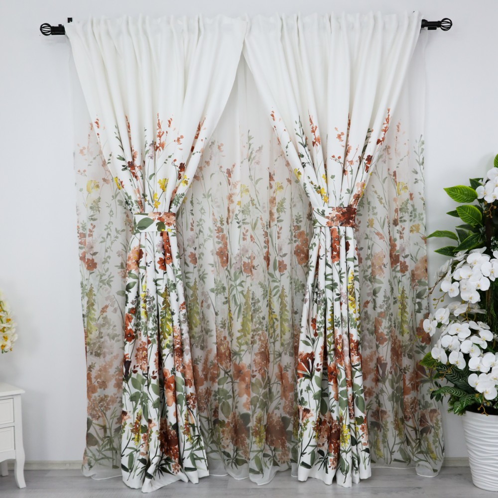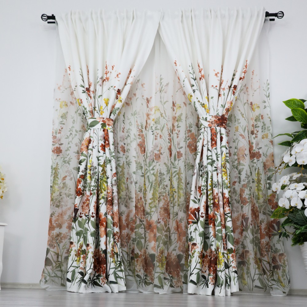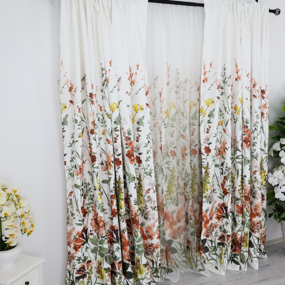 Set 2 bucati de Draperie Satinata imprimata - 200cm x 232cm x rejansa pt bara, flori de toamna, CumparaMisim, cod produs: BDRs7a