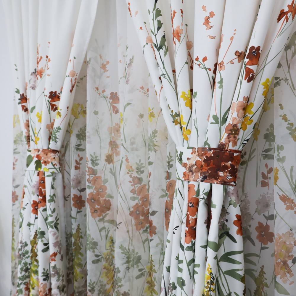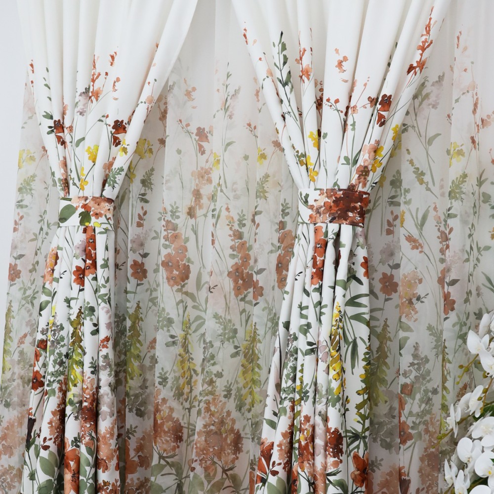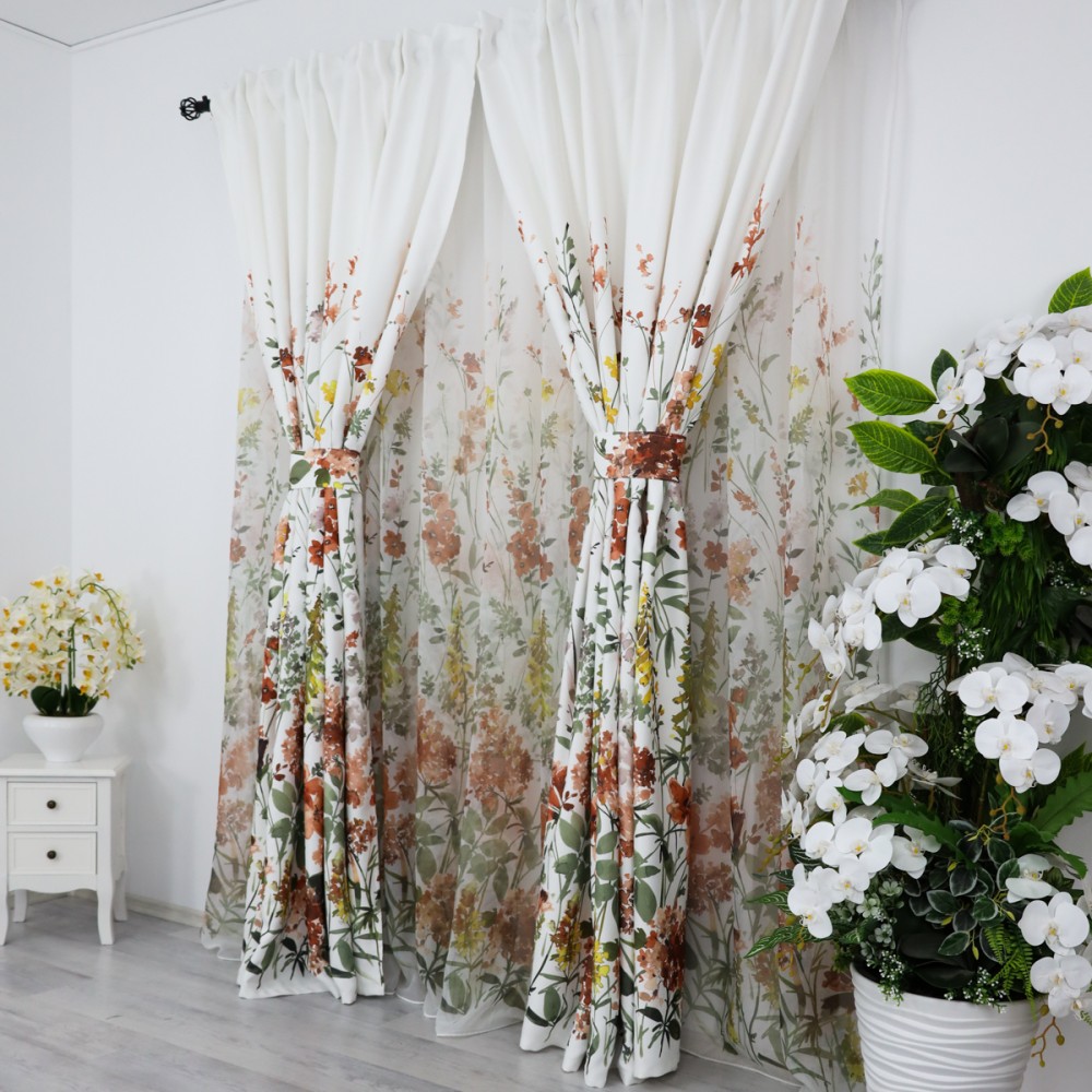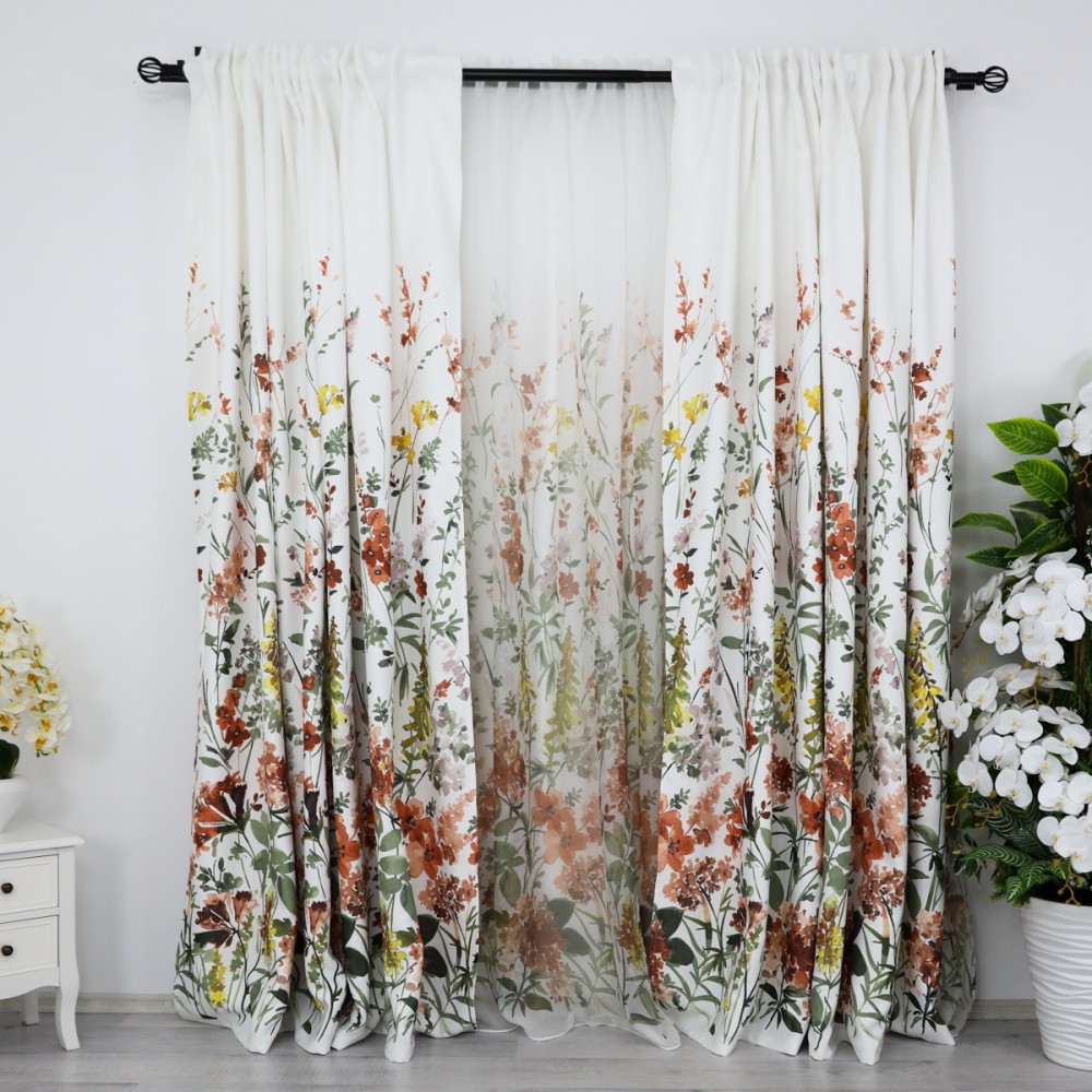 Set 2 bucati de Draperie Satinata imprimata - 200cm x 232cm x rejansa pt bara, flori de toamna, CumparaMisim, cod produs: BDRs7a