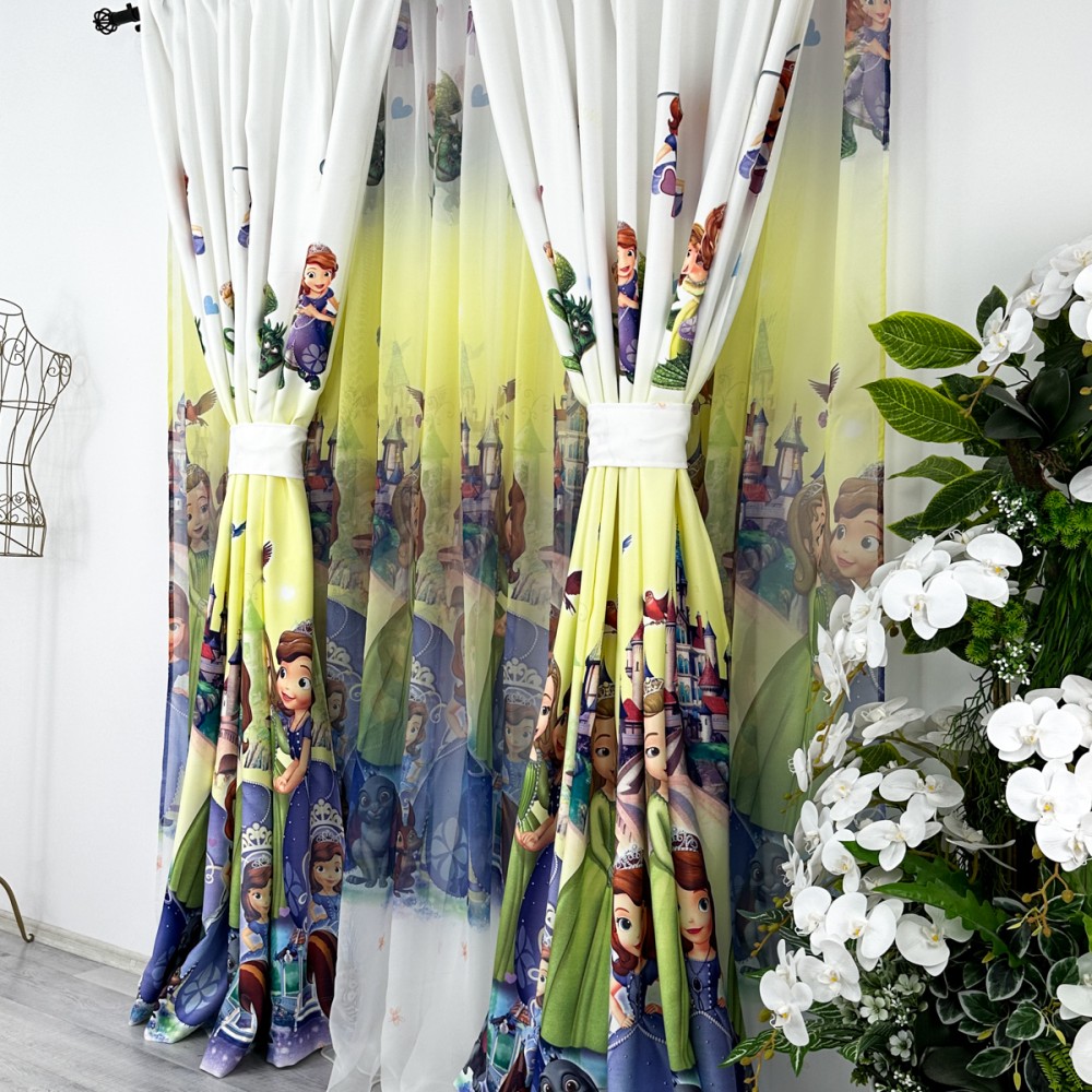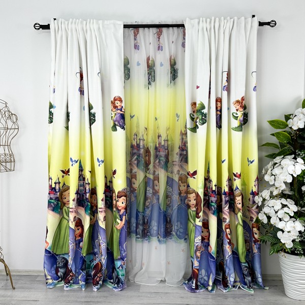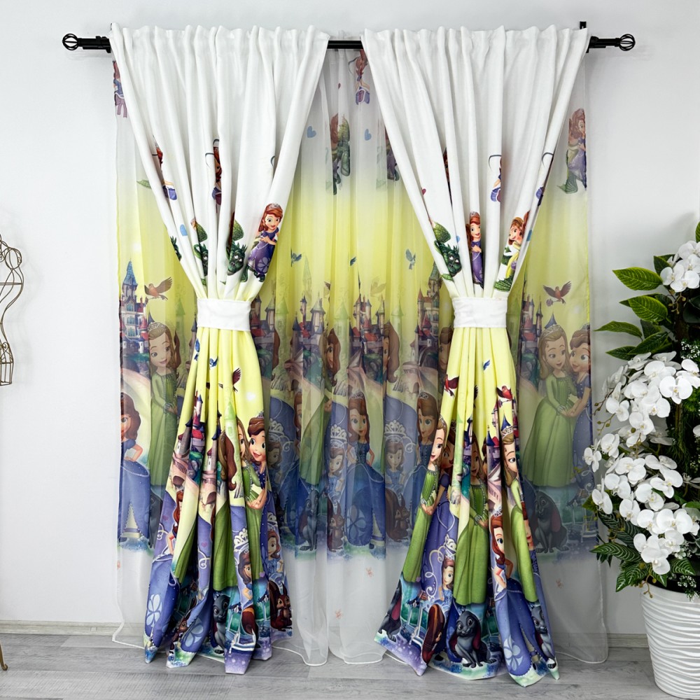 Set 2 bucati de Draperie Satinata pentru copii - 200cm x 232cm x rejansa pt bara, model printese, CumparaMisim, cod produs: BDRs1a