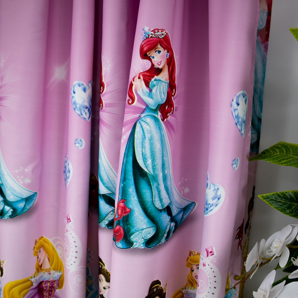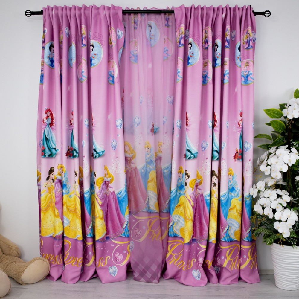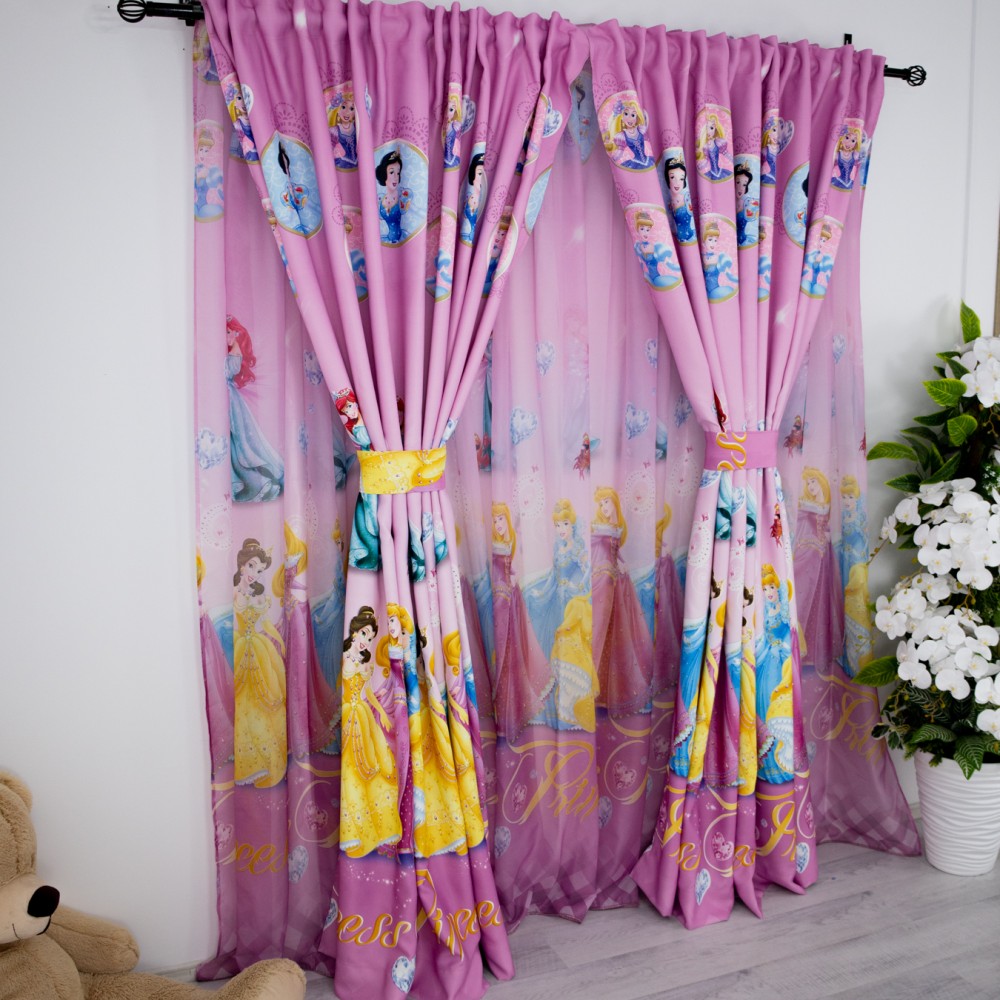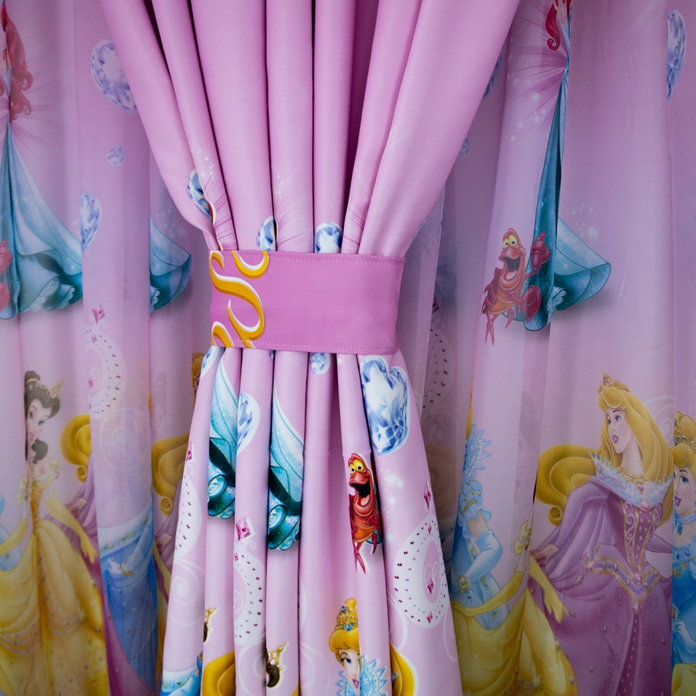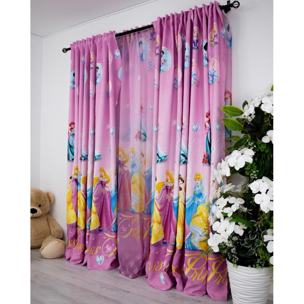 Set 2 bucati de Draperie Satinata pentru copii, Roz, printese, 200cm latime, 232cm inaltime cu rejansa pt bara, CumparaMisim, cod produs: BDRs11a