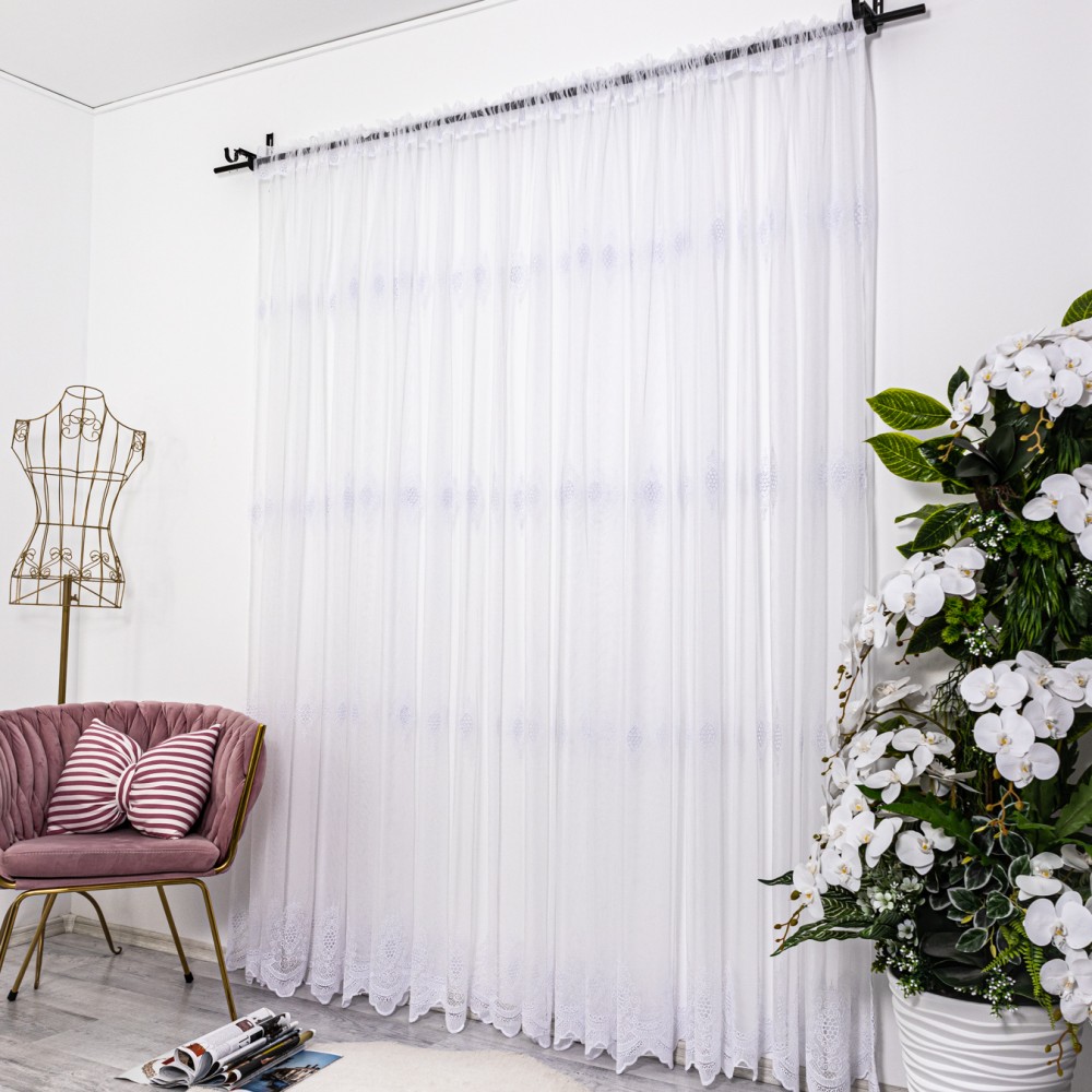 Set 2 bucati de Perdea cu broderie eleganta, Alb, 150cm latime x 80cm inaltime, cu rejansa pt sina, CumparaMisim, cod produs: APDs25a