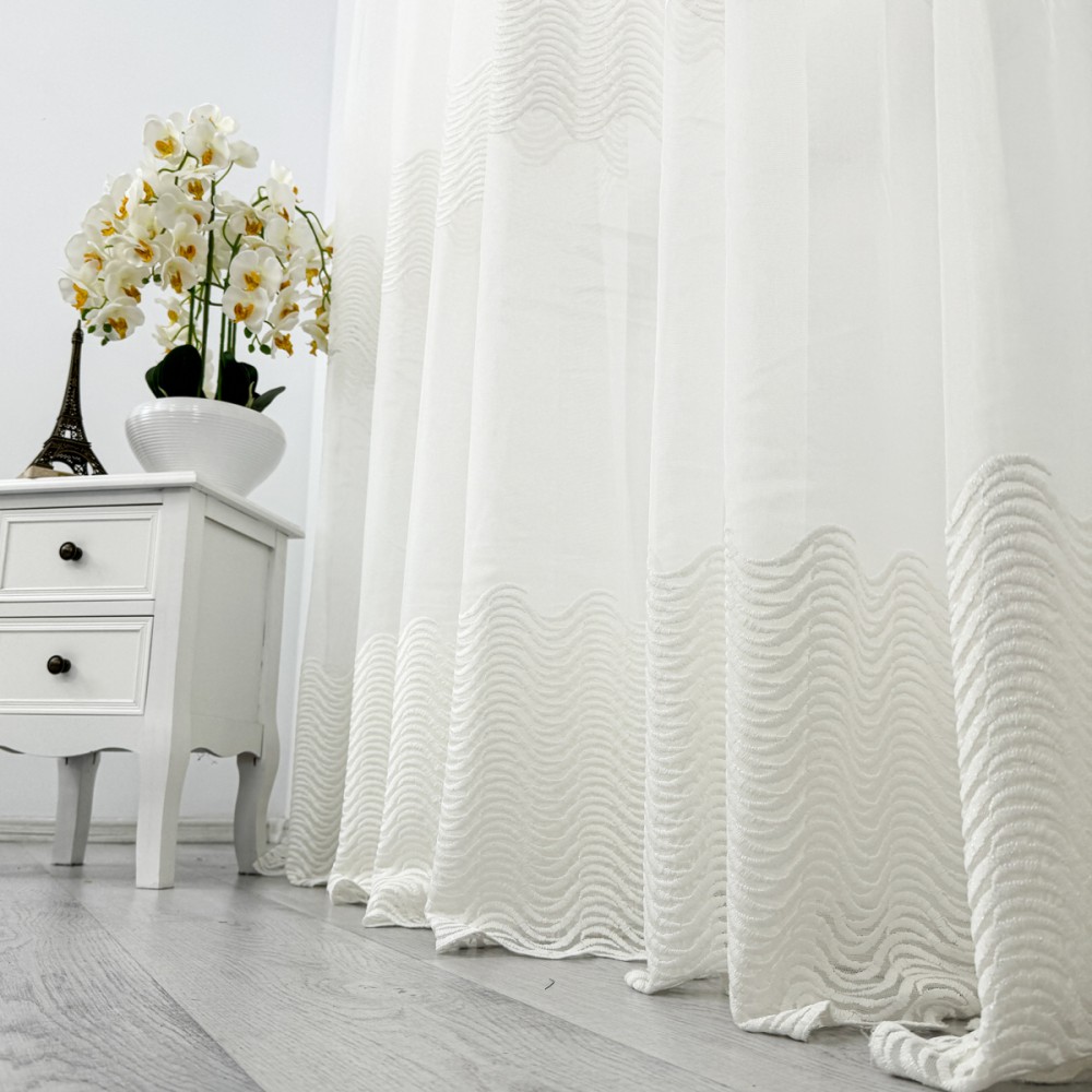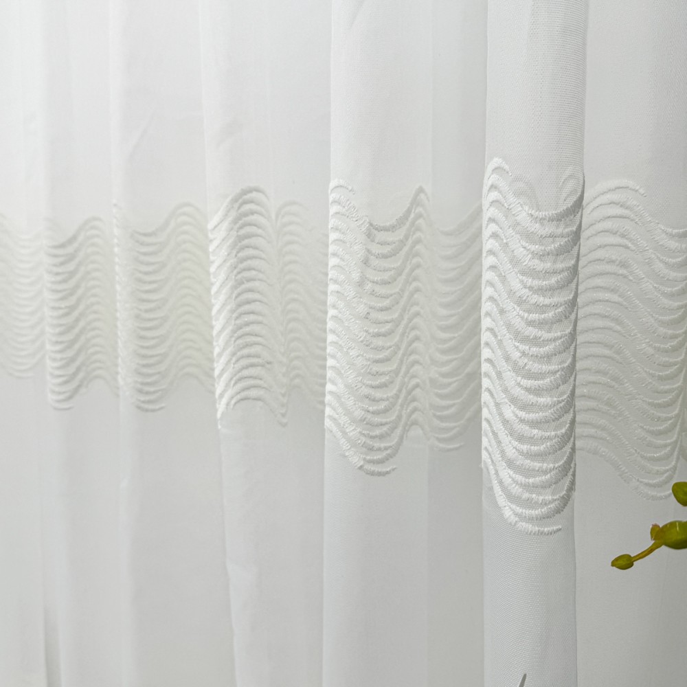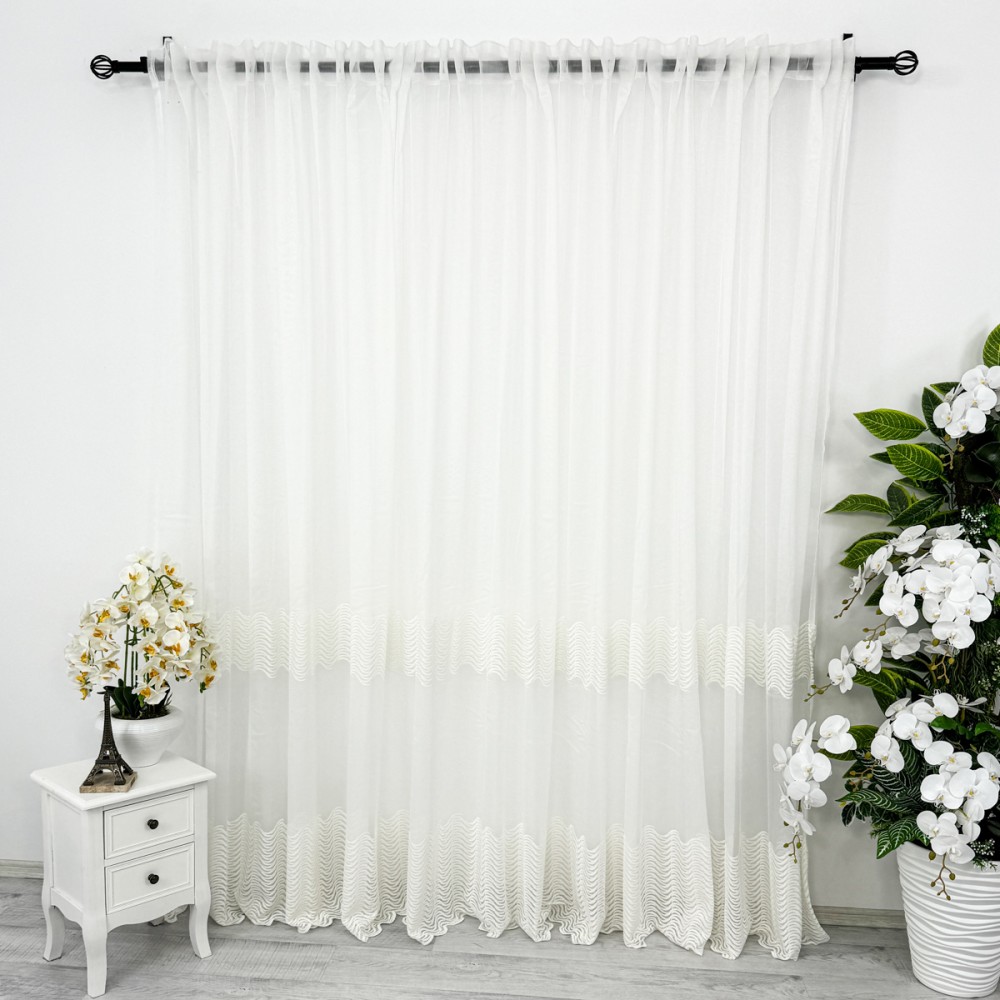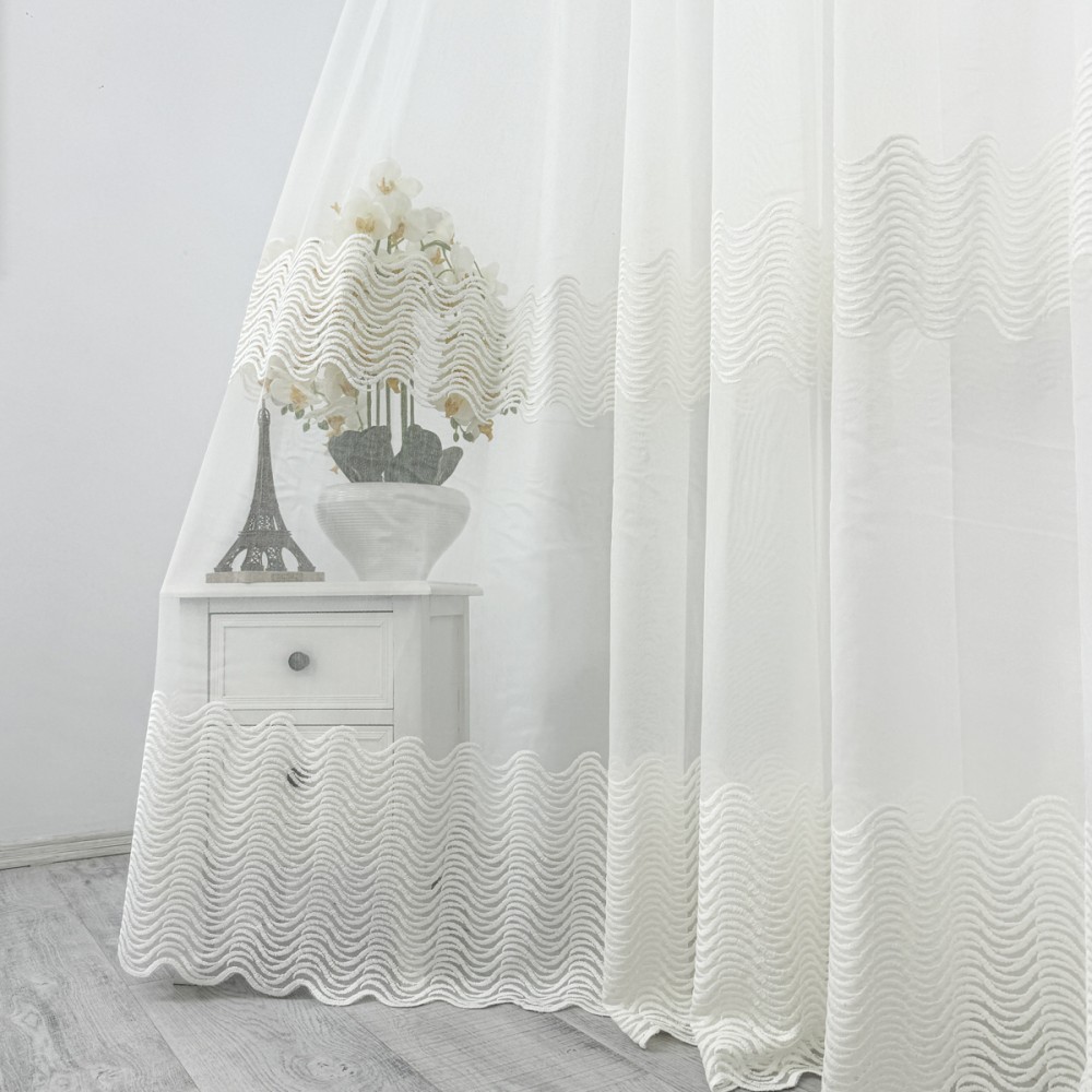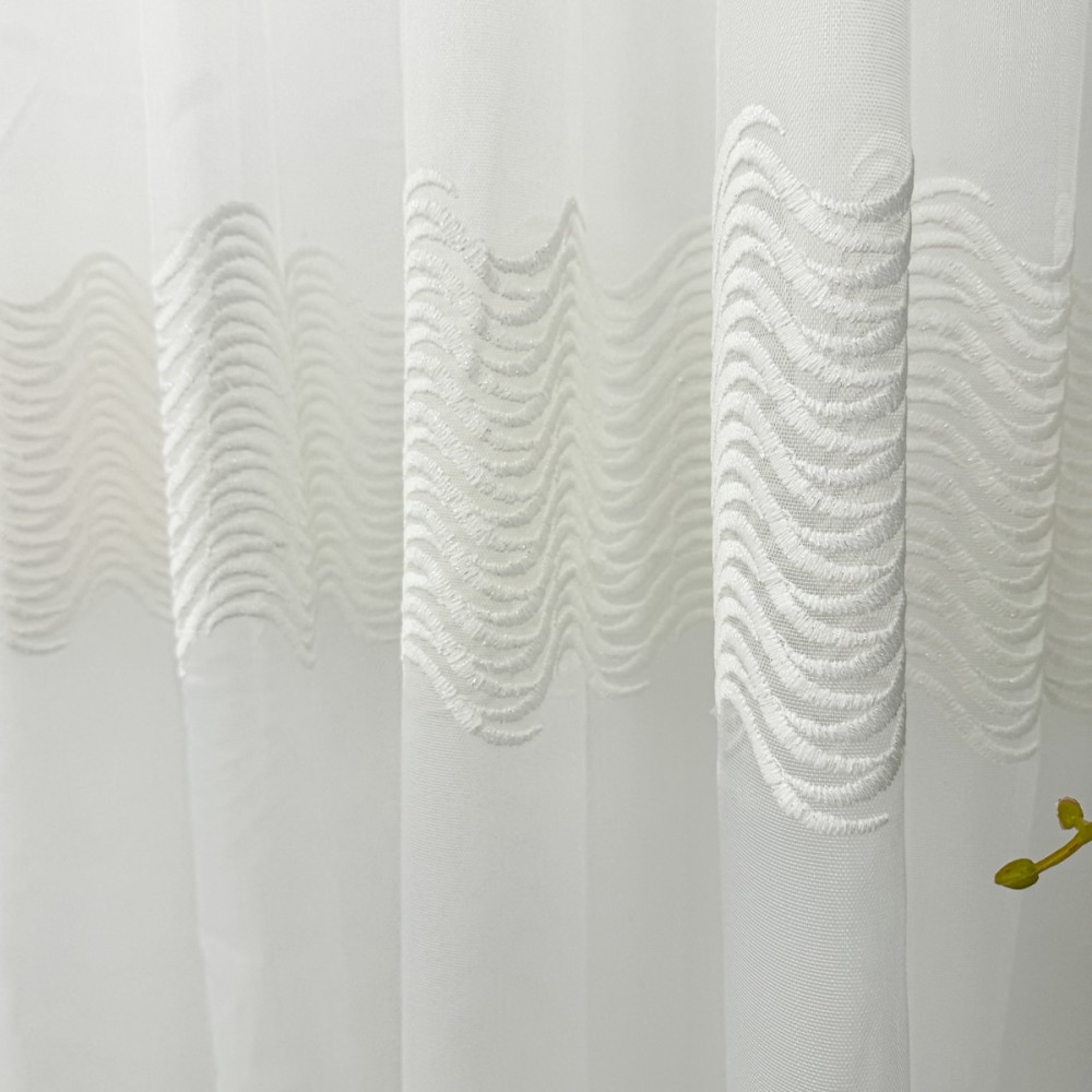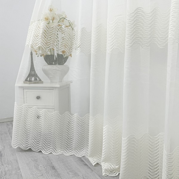 Perdea Waves din Tulle cu Broderie, Ivoire, 5 m latime x 2.32 m inaltime, cu rejansa pt bara, CumparaMisim, cod produs: BPDs150a