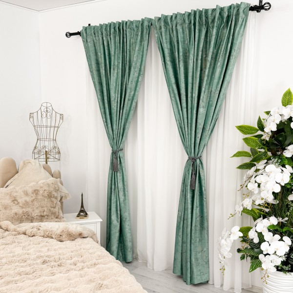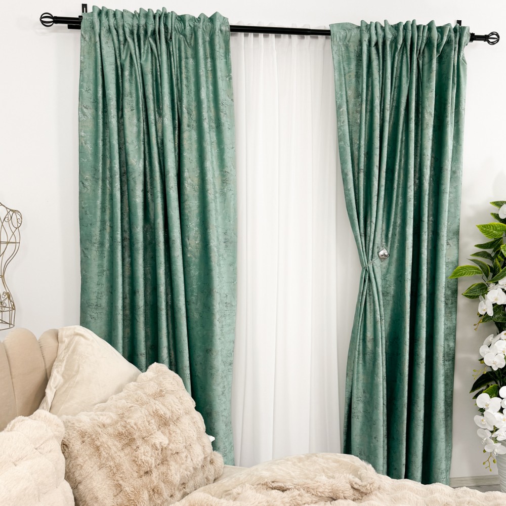 Set 2 bucati Draperie Catifea cu insertii metalizate, Menta - V21 - 200cm latime x 2.48m inaltime, rejansa pt. bara, CumparaMisim, cod produs: CSR-DRs6B