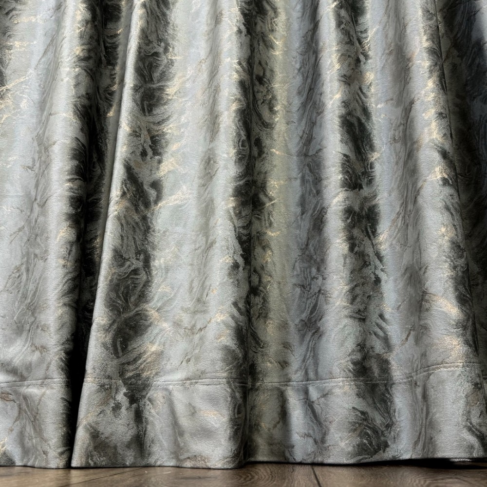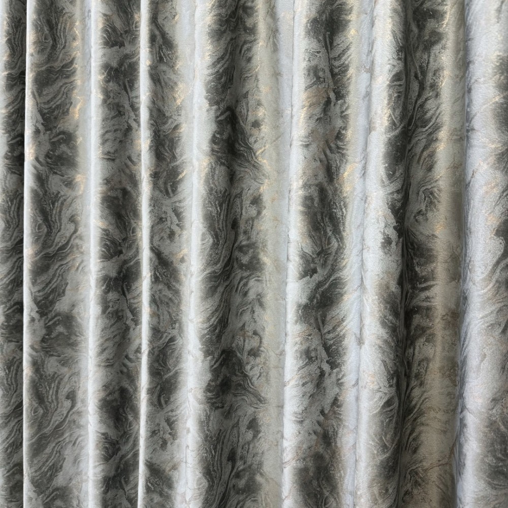 Set 2 bucati Draperie Catifea MYKONOS cu valuri rafinate aurii, Gri mediu - V4, 200cm latime x 2.5m inaltime, cu tiv lat, CumparaMisim, cod produs: BDRs55a