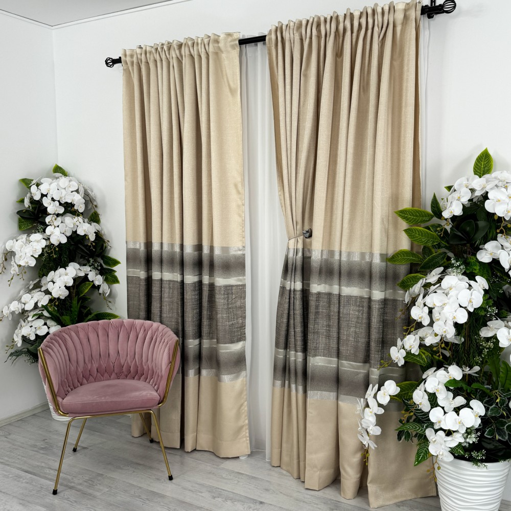 Ceea ce face draperiile cu adevărat remarcabile sunt detaliile aurii. Aceste insertii metalizate adaugă un element de strălucire și glamour, creând un contrast elegant cu textura mată a materialului. Fie că sunt plasate într-un living, într-un dormitor sau într-o sală de mese, draperiile cu insertii aurii atrag atenția și conferă o notă de opulență.