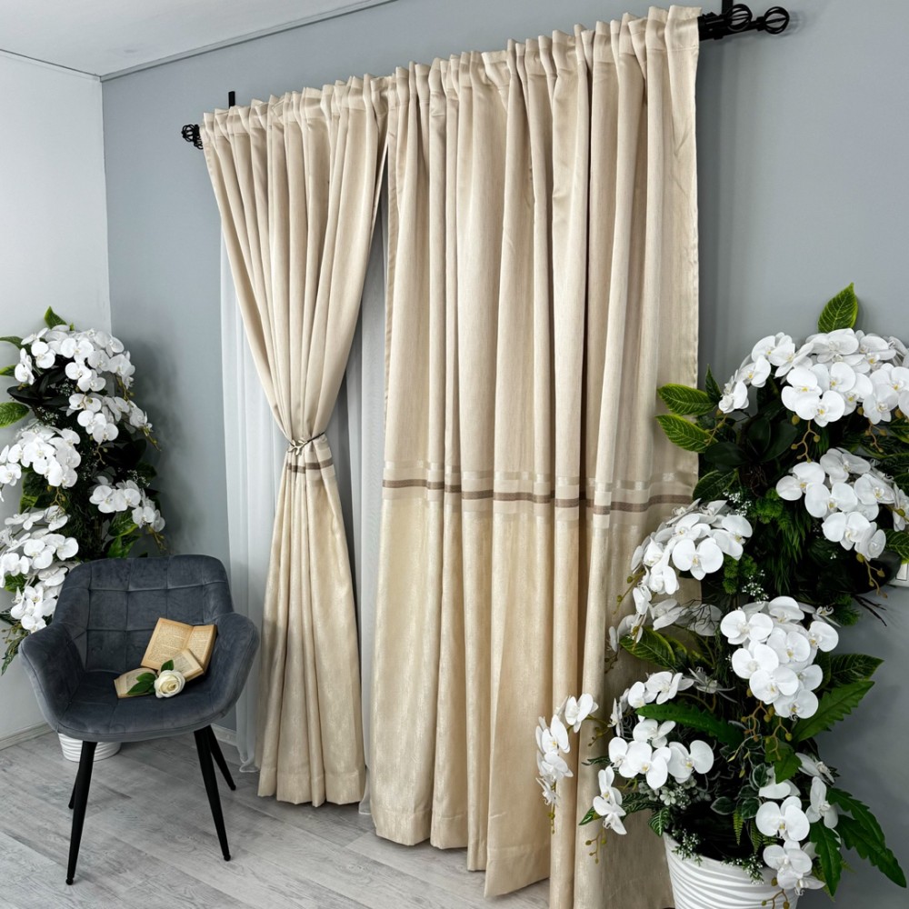 Aceste draperii nu sunt doar un element de decor, ci și o declarație a bunului gust și a stilului sofisticat al proprietarului. Cu o astfel de alegere, încăperea devine cu adevărat remarcabilă, transformând orice spațiu într-un sanctuar al luxului și al eleganței.