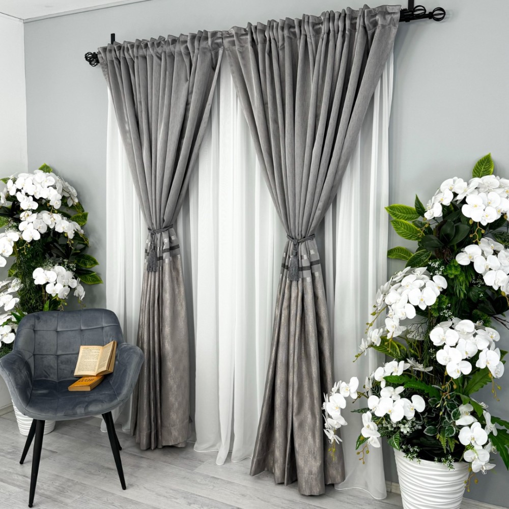 Aceste draperii nu sunt doar un element de decor, ci și o declarație a bunului gust și a stilului sofisticat al proprietarului. Cu o astfel de alegere, încăperea devine cu adevărat remarcabilă, transformând orice spațiu într-un sanctuar al luxului și al eleganței.