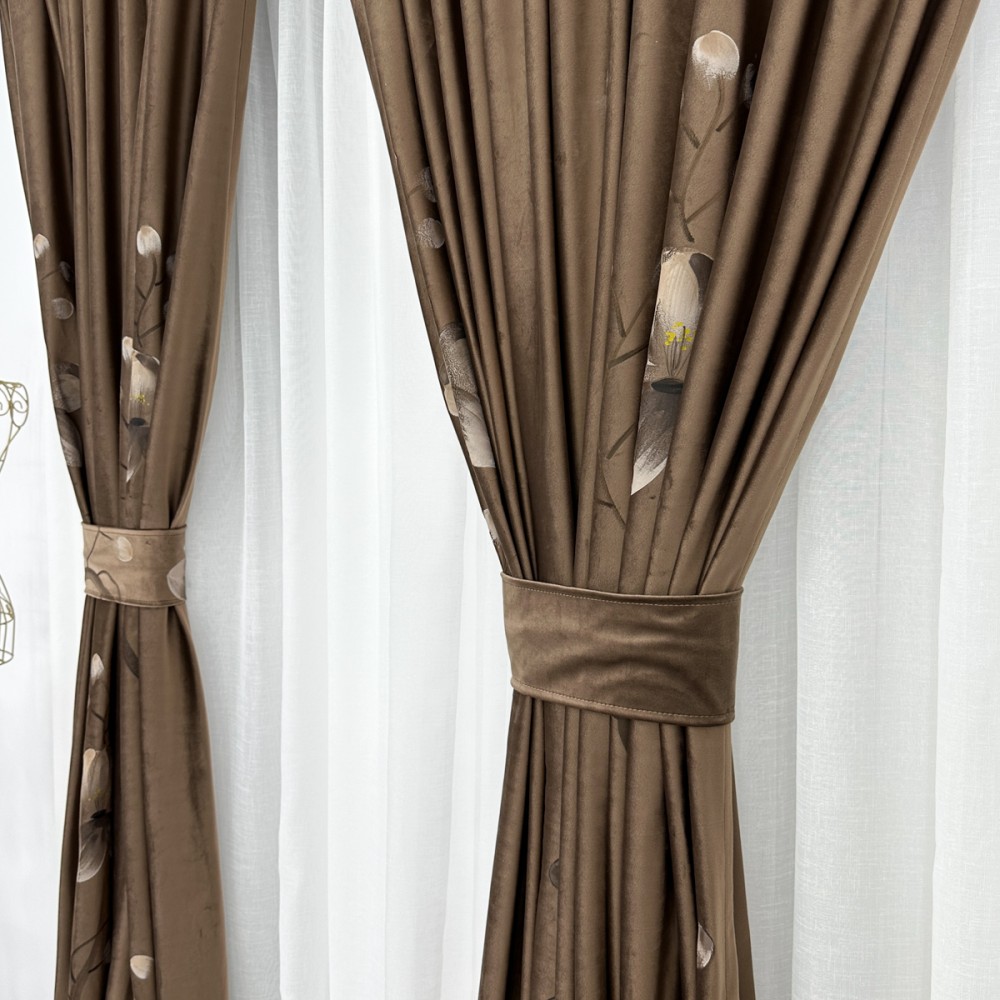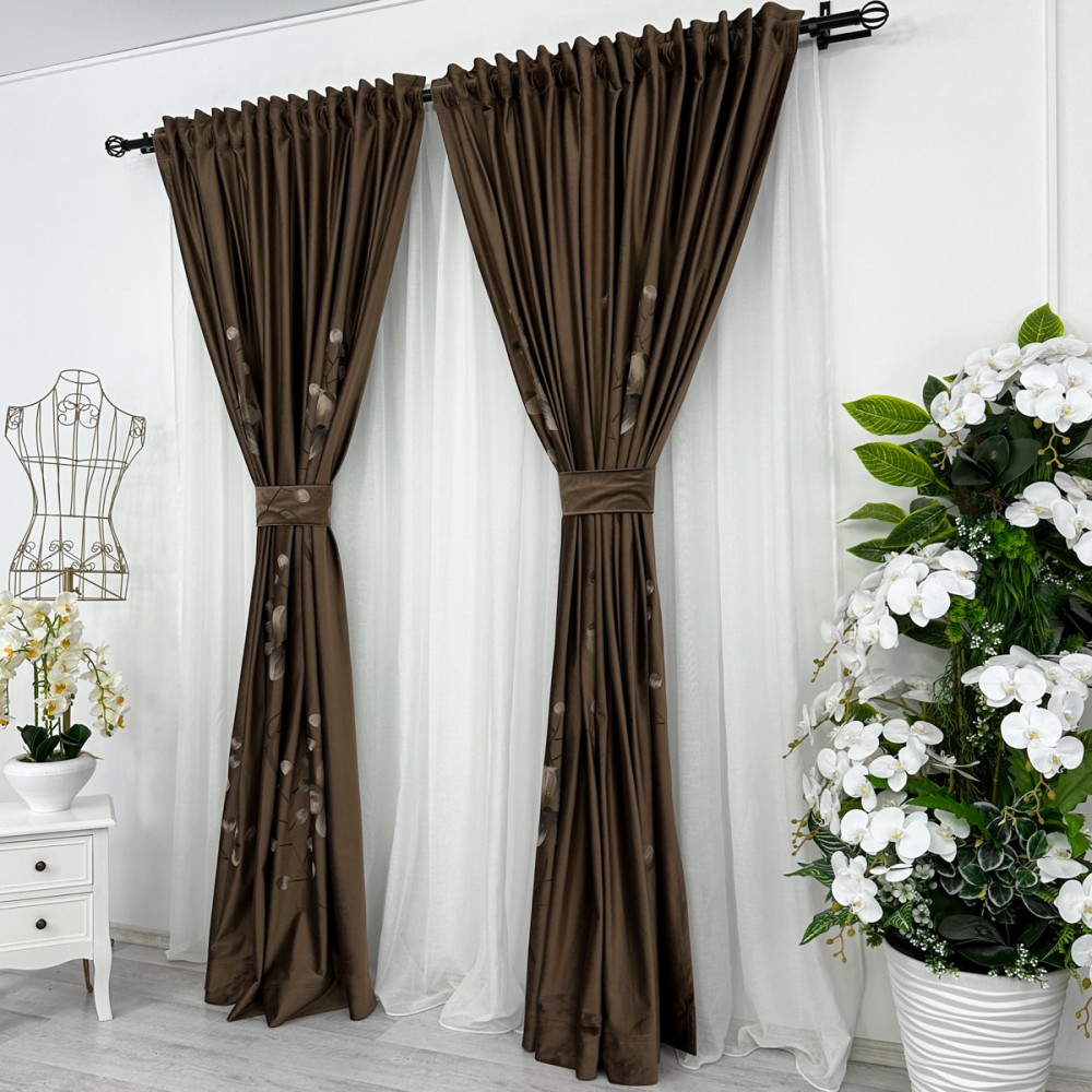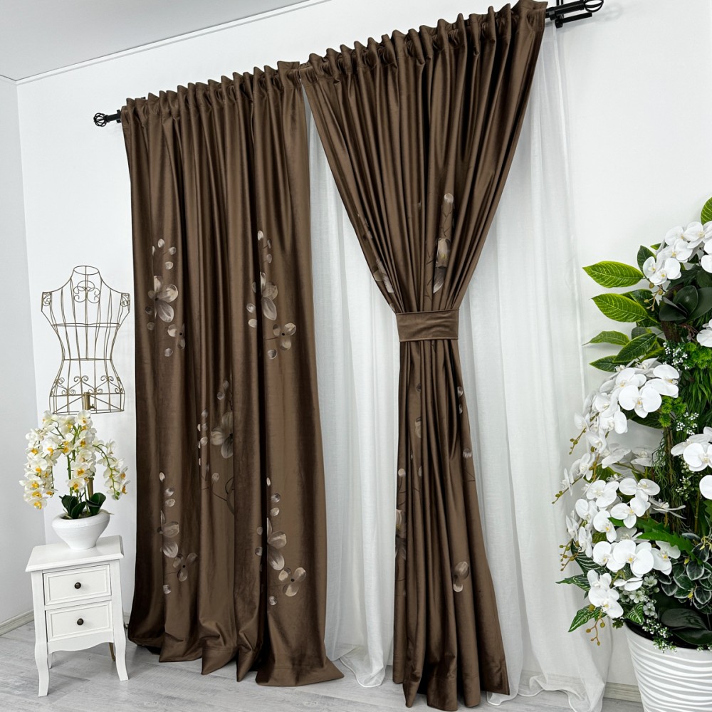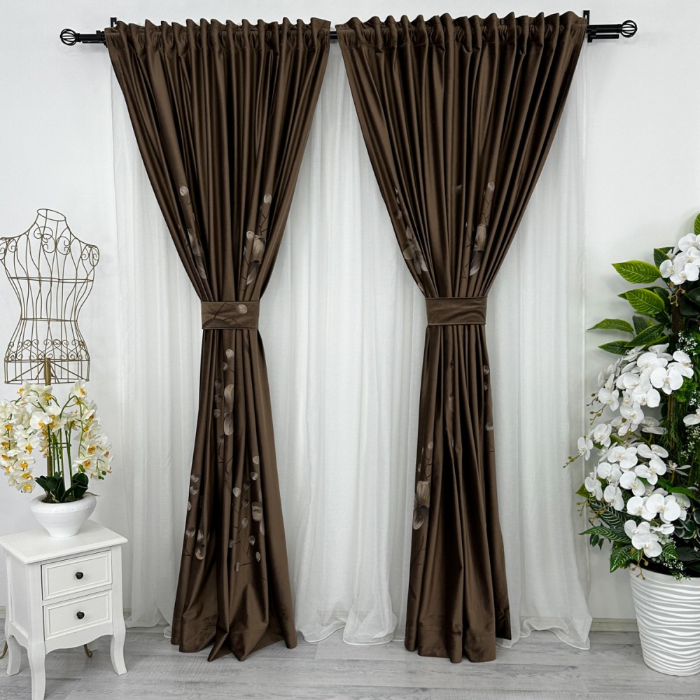 Set 2 bucatie de Draperie Catifea Pictata Manual - 2m latime x 232cm inaltime x rejansa pt bara, Maro, flori, CumparaMisim, cod produs: BDRs26a