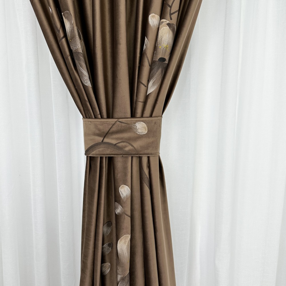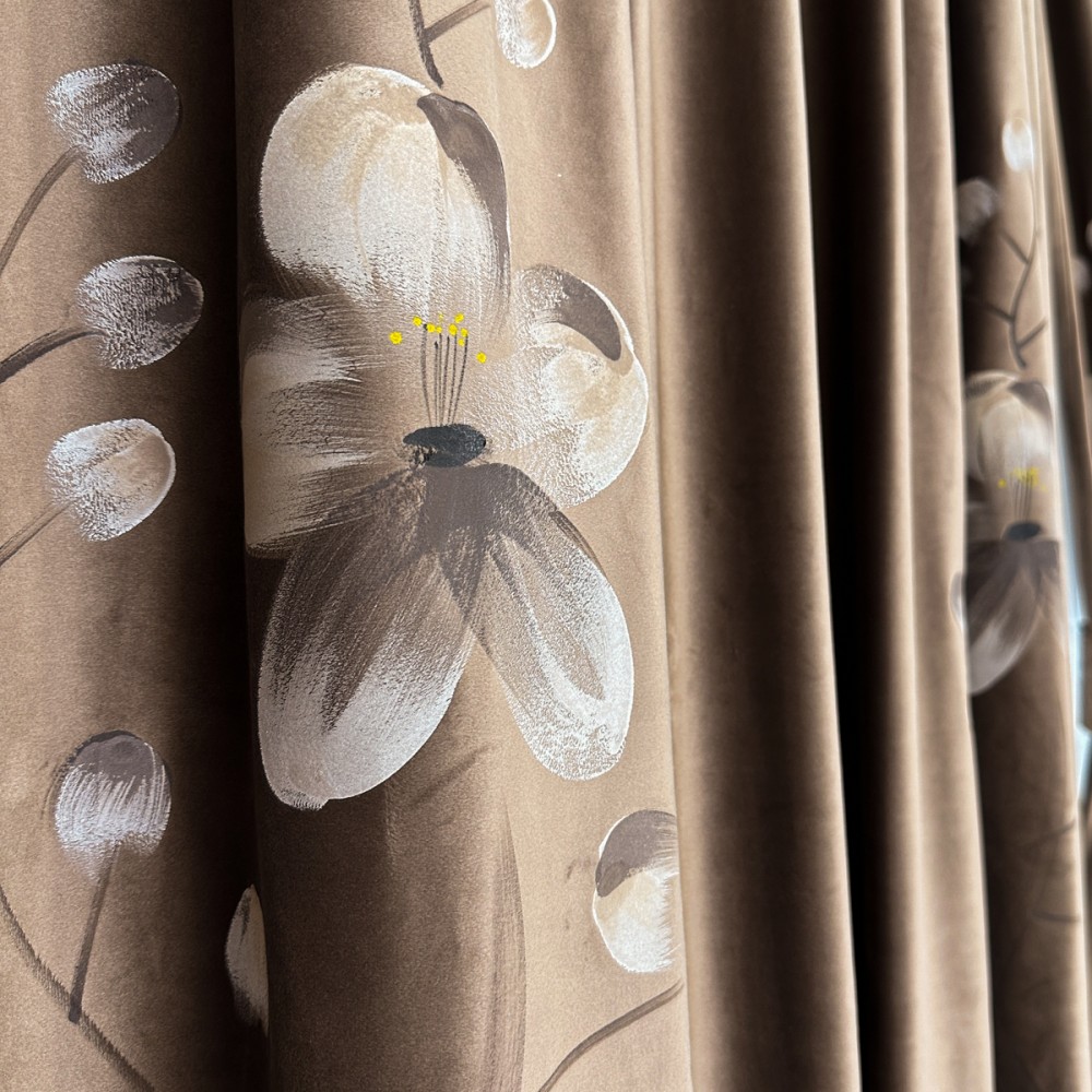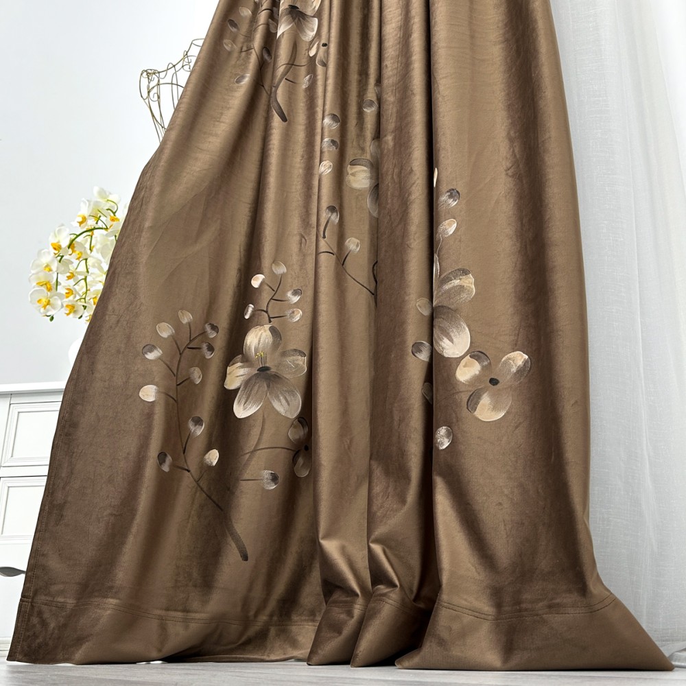 Draperiile din catifea pictata manual, cu model floral, reprezintă o alegere sofisticată și luxoasă pentru orice încăpere. Aceste draperii sunt confecționate dintr-un material de înaltă calitate, catifea, care oferă o textură moale și bogată, aducând un sentiment de rafinament și eleganță în orice spațiu.