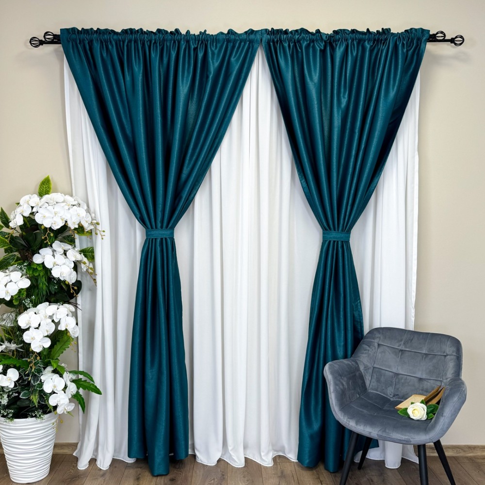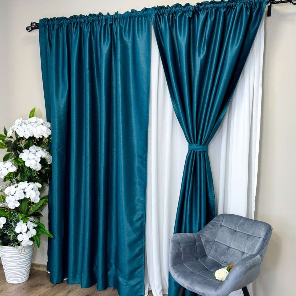 Set 2 Draperii Blackout CLASS Satinata cu fir fin de sclipici - 2m latime x 2.45m inaltime x Tiv lat, Turquoise - CR10, CumparaMisim, cod produs: CRDs106A