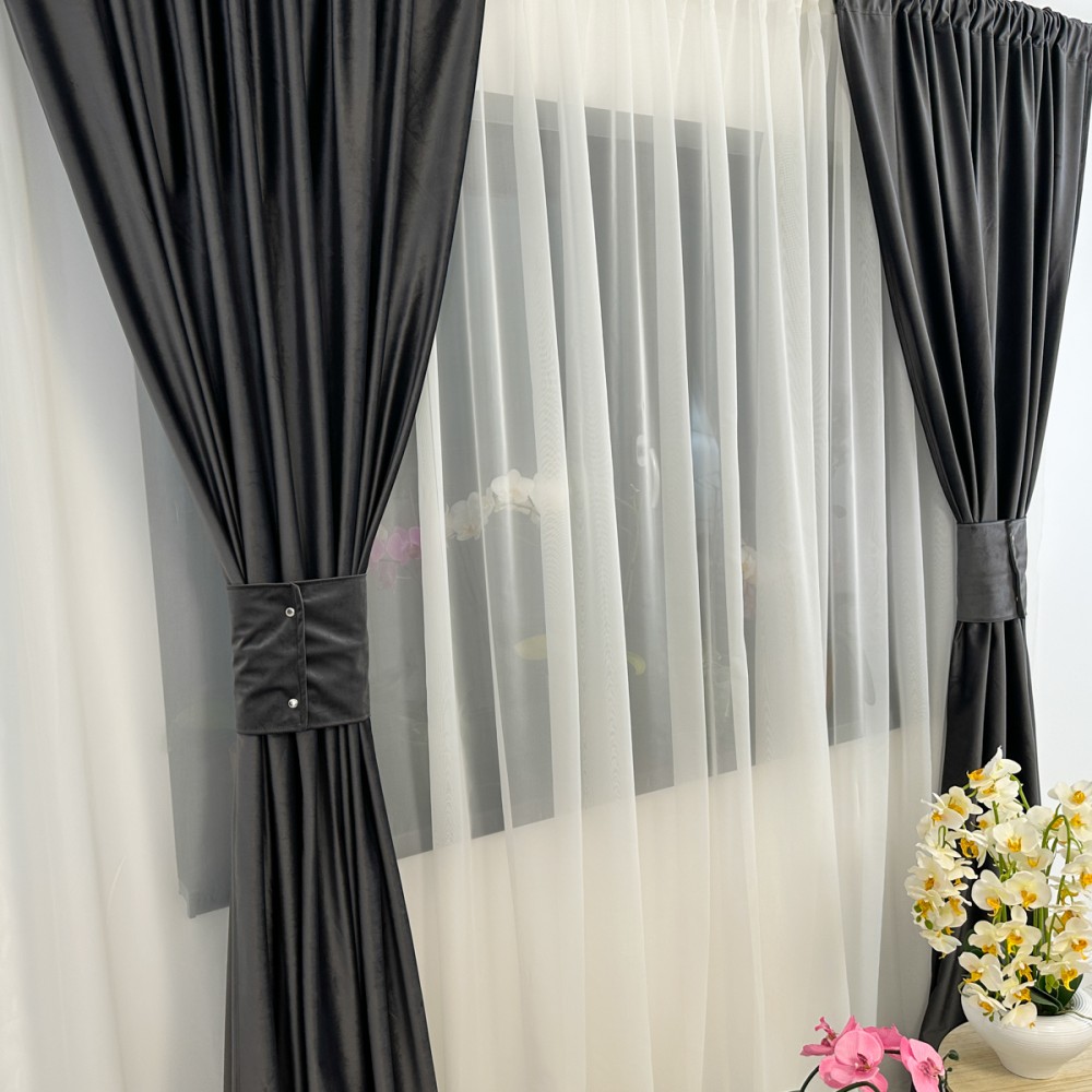1. Material de înaltă calitate: Utilizăm catifea de calitate superioară pentru a crea draperii elegante și luxoase. Catifeaua oferă o textură moale și matasoasă, adăugând un aspect sofisticat și rafinat în orice încăpere.