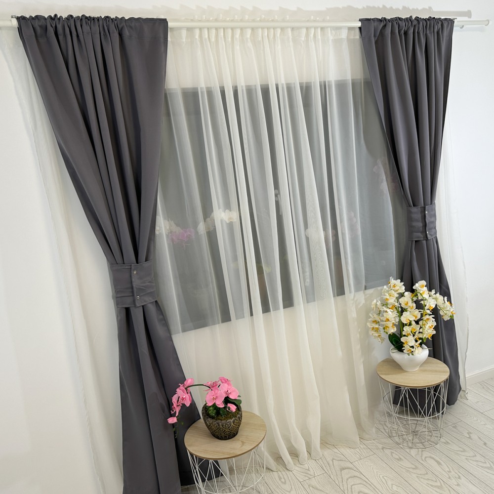 Set 2 Draperii Blackout Satinata - 1.20m x 232cm x rejansa pt bara, Gri inchis, CumparaMisim, cod produs: DRPs151a