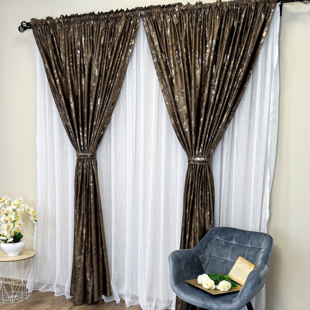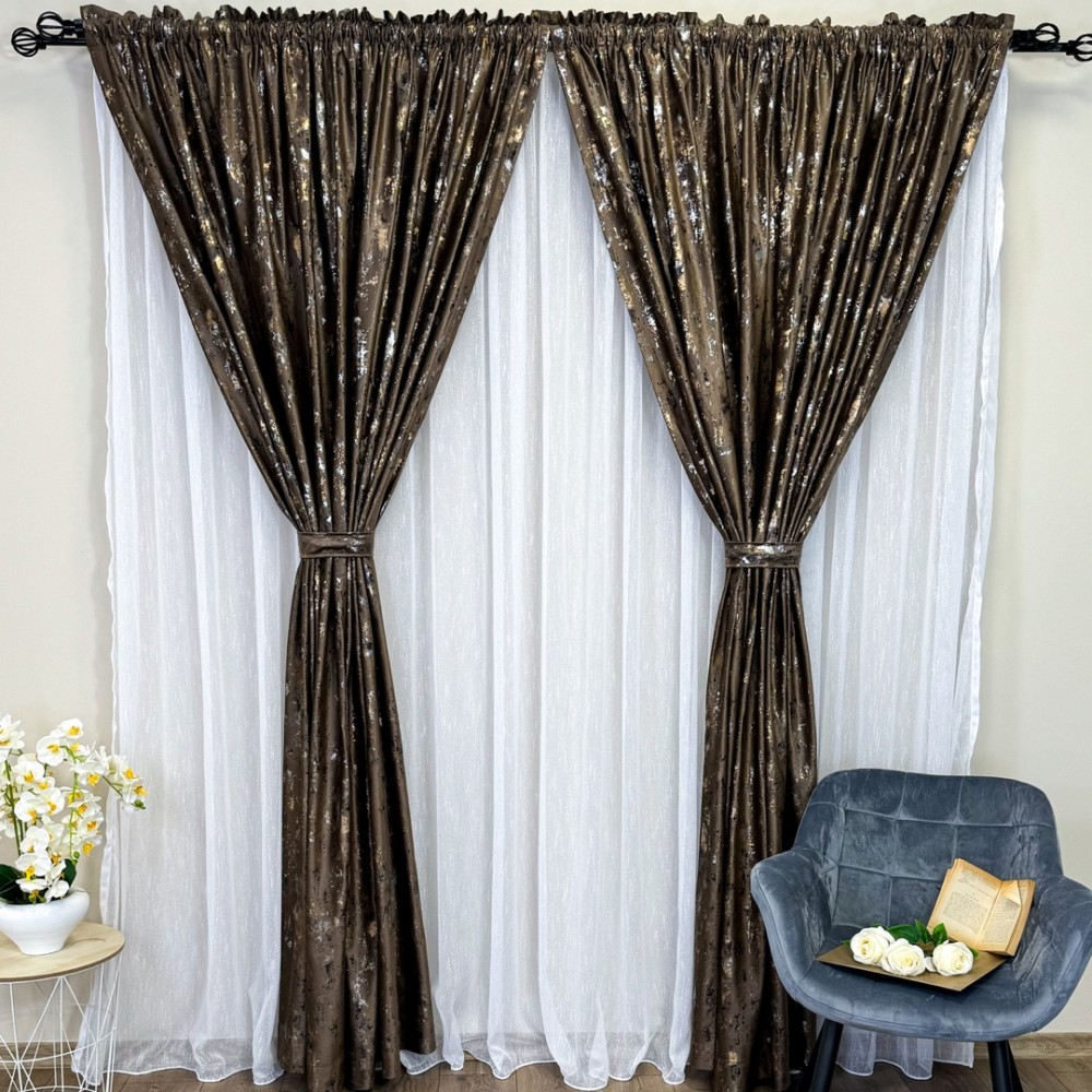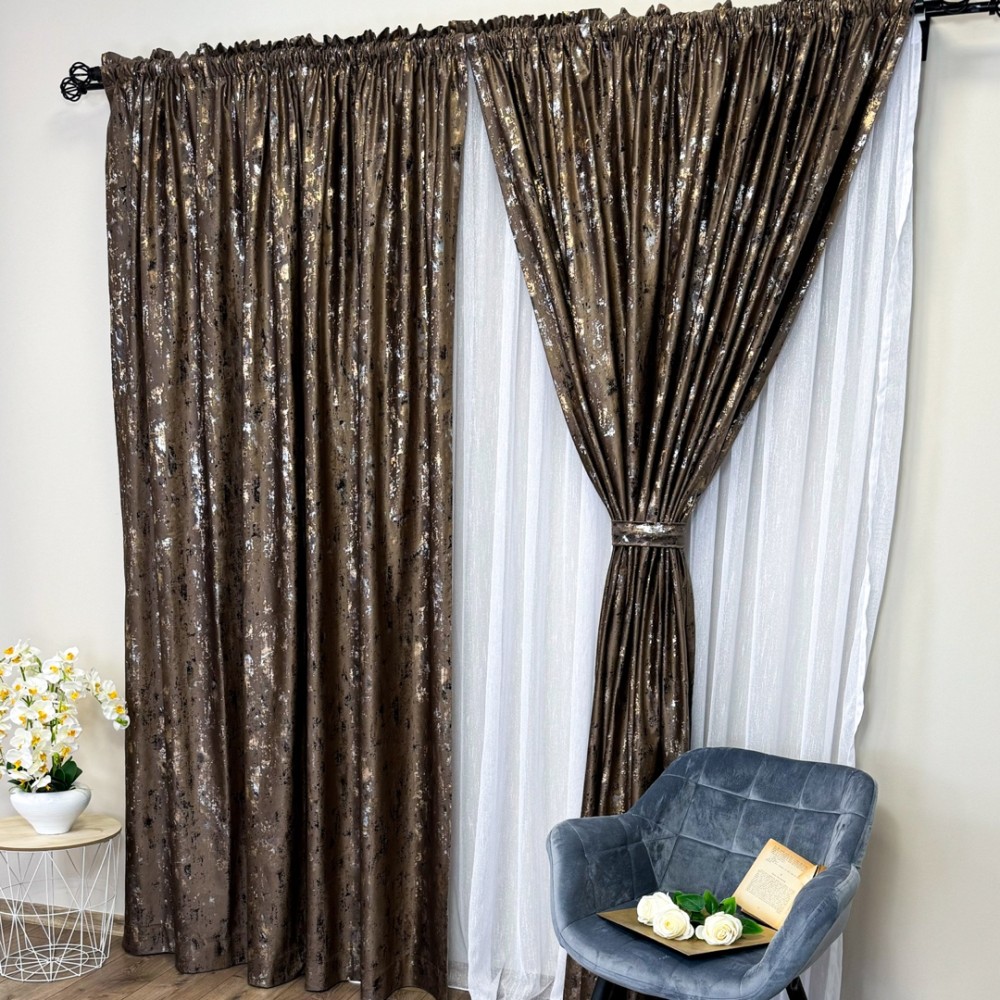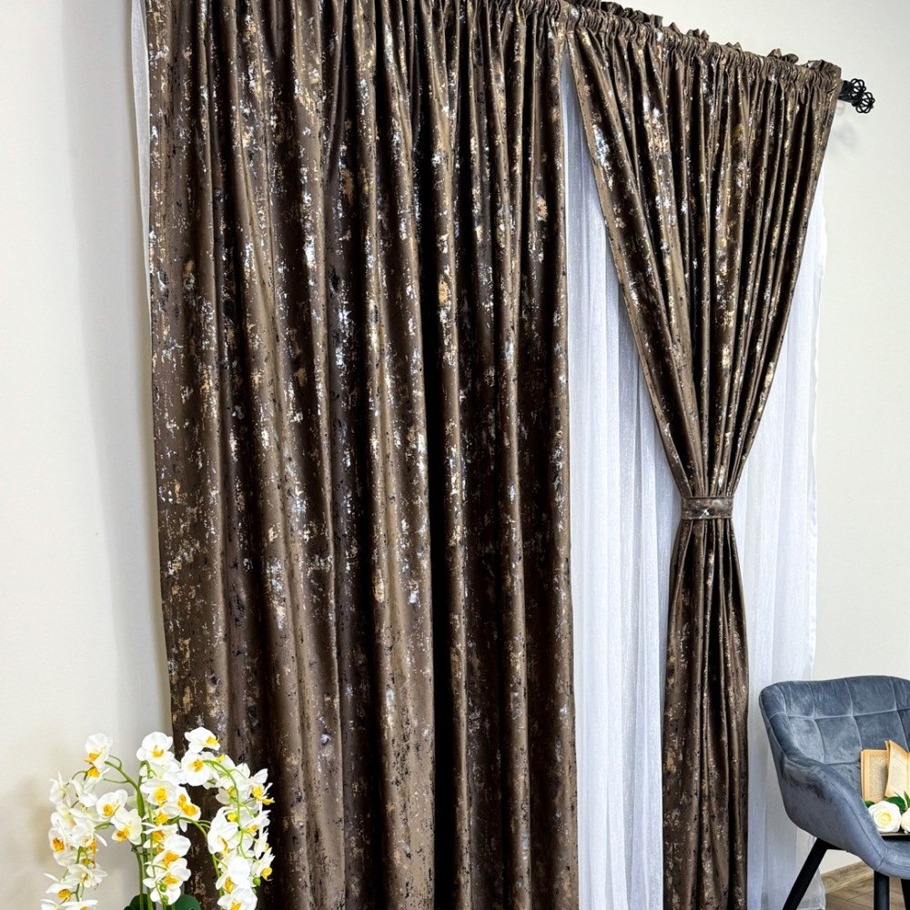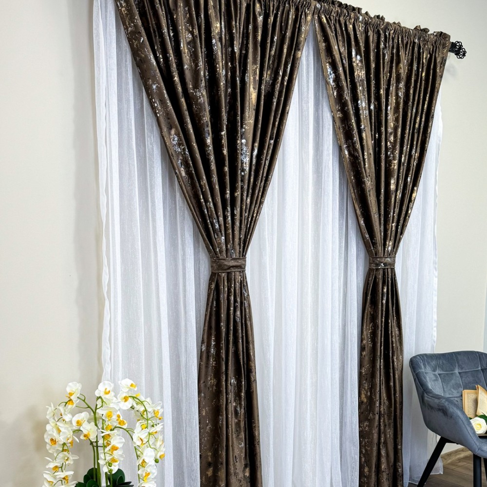 Aceste draperii nu sunt doar un element de decor, ci și o declarație a bunului gust și a stilului sofisticat al proprietarului. Cu o astfel de alegere, încăperea devine cu adevărat remarcabilă, transformând orice spațiu într-un sanctuar al luxului și al eleganței.