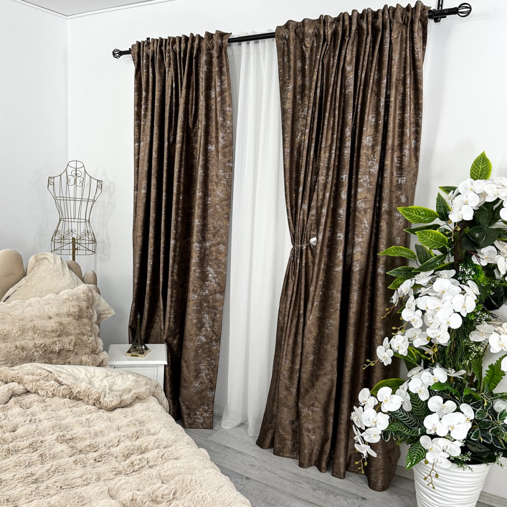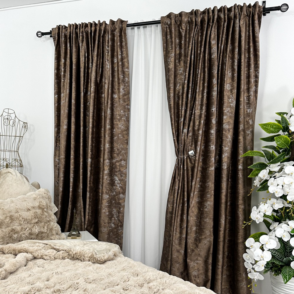 Set 2 Draperii Catifea cu insertii metalizate - 200cm x 232cm, Rejansa pt. bara , Maro - V7, CumparaMisim, cod produs: CSR-DRs4A