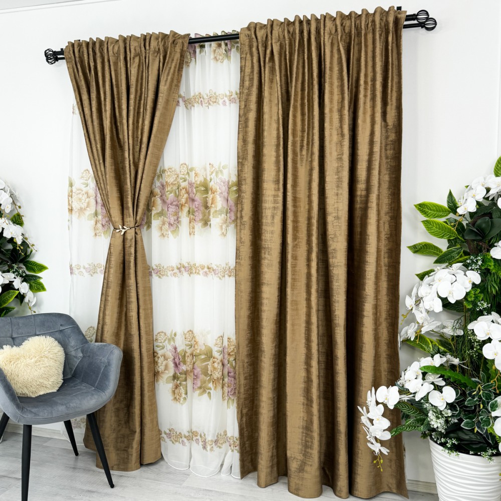 Set 2 Draperii Catifea cu model Venti - 200cm x 232cm , Rejansa pt. bara , Maro deschis, CumparaMisim, cod produs: BDRs151A