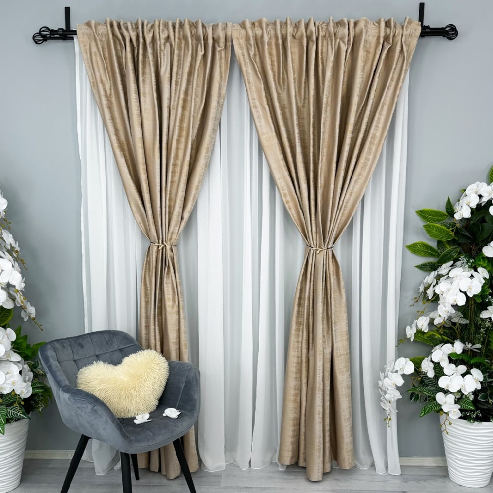 Folosim materiale de înaltă calitate, cu un aspect satinat luxos, care adaugă un plus de strălucire și rafinament oricărei încăperi. Textura fină și moale a acestor draperii încântă simțurile și adaugă o notă de eleganță și sofisticare în designul interior.