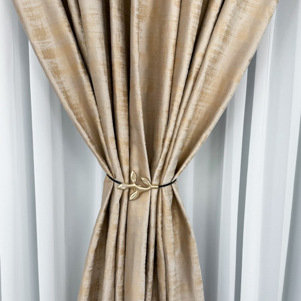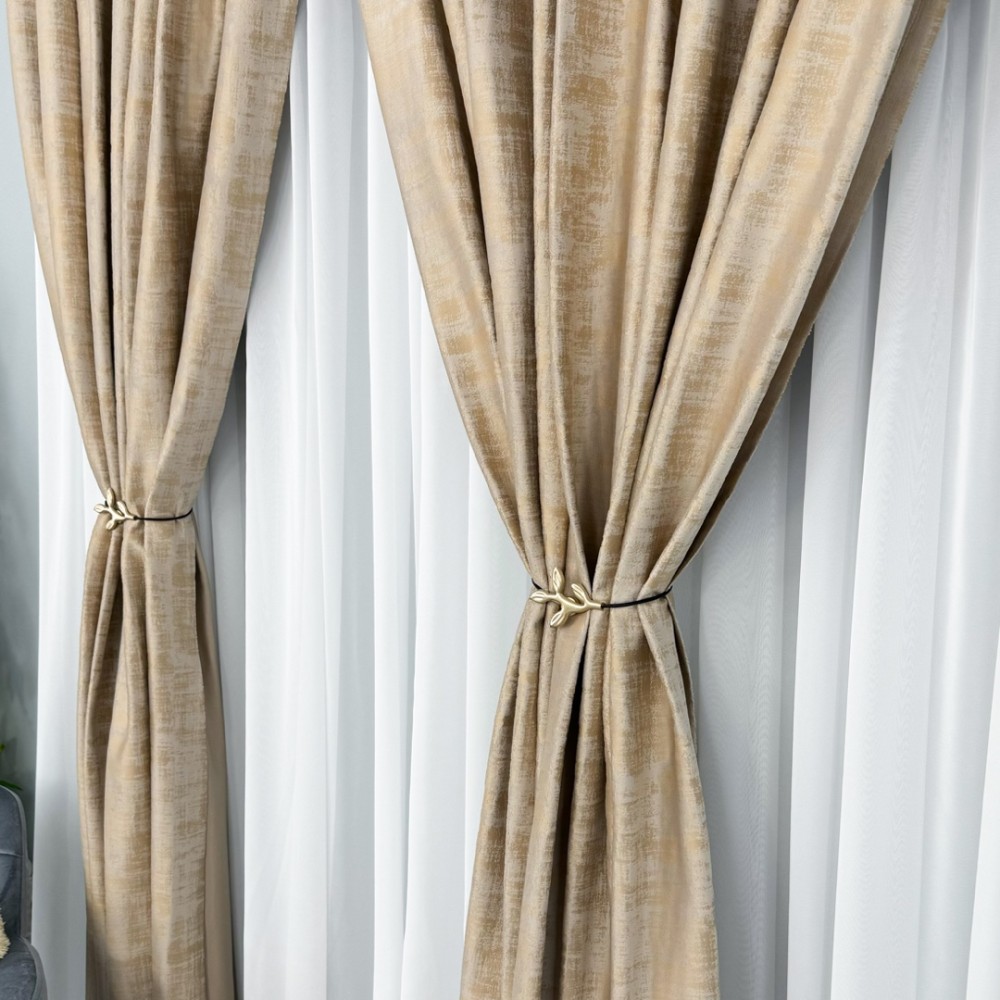 Set 2 Draperii Catifea cu model Venti - 2m x 232cm x rejansa pt bara, Bej, CumparaMisim, cod produs: BDRs156a