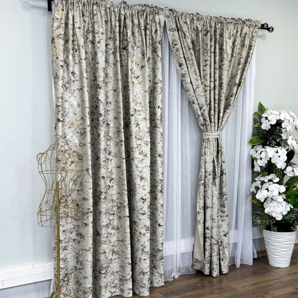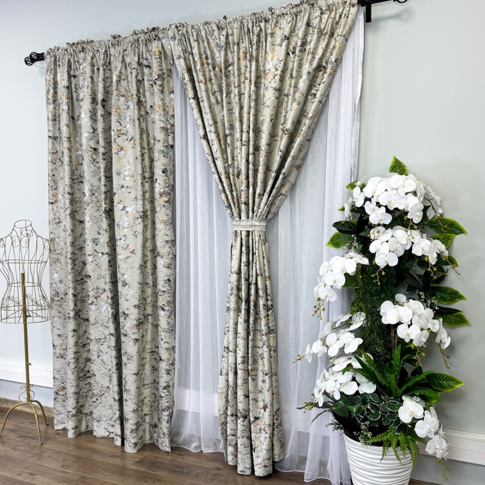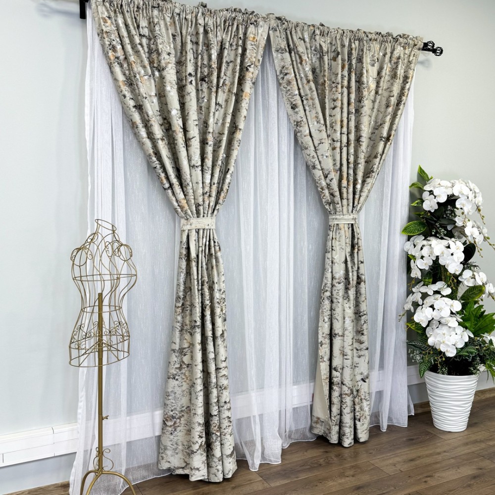 Folosim materiale de înaltă calitate, cu un aspect satinat luxos, care adaugă un plus de strălucire și rafinament oricărei încăperi. Textura fină și moale a acestor draperii încântă simțurile și adaugă o notă de eleganță și sofisticare în designul interior.