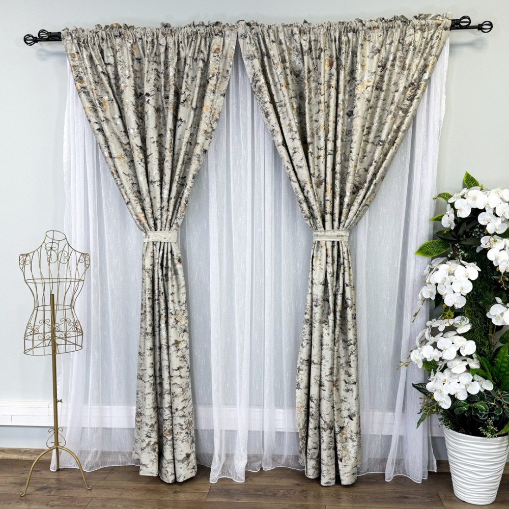 Aceste draperii nu sunt doar un element de decor, ci și o declarație a bunului gust și a stilului sofisticat al proprietarului. Cu o astfel de alegere, încăperea devine cu adevărat remarcabilă, transformând orice spațiu într-un sanctuar al luxului și al eleganței.