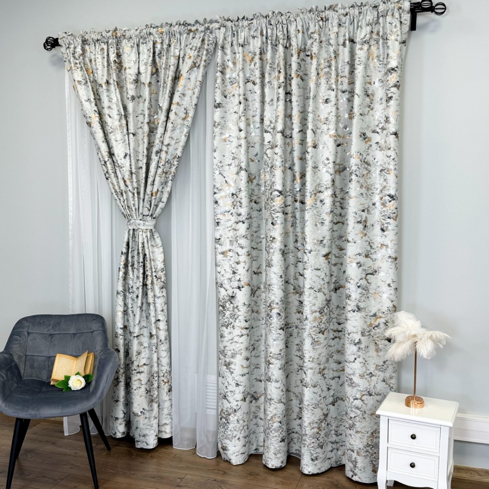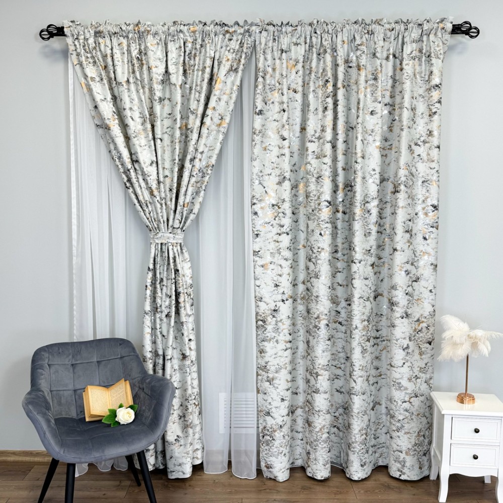 Set 2 Draperii Catifea Nikko cu insertii aurii - 200cm latime x 238cm inaltime ,Tiv lat, Gri light - V6, CumparaMisim, cod produs: CRDs3A