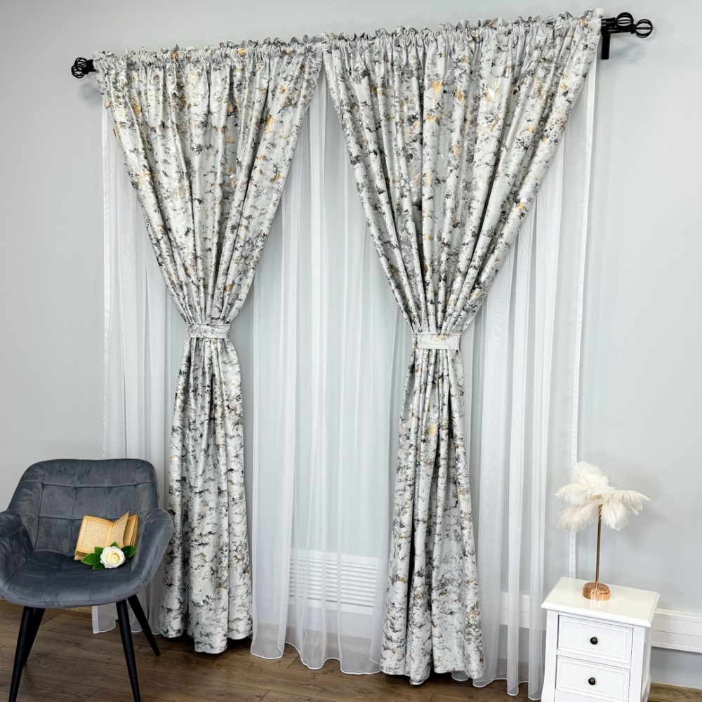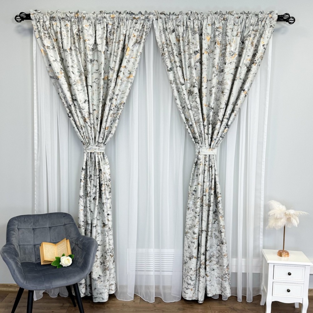 Aceste draperii nu sunt doar un element de decor, ci și o declarație a bunului gust și a stilului sofisticat al proprietarului. Cu o astfel de alegere, încăperea devine cu adevărat remarcabilă, transformând orice spațiu într-un sanctuar al luxului și al eleganței.