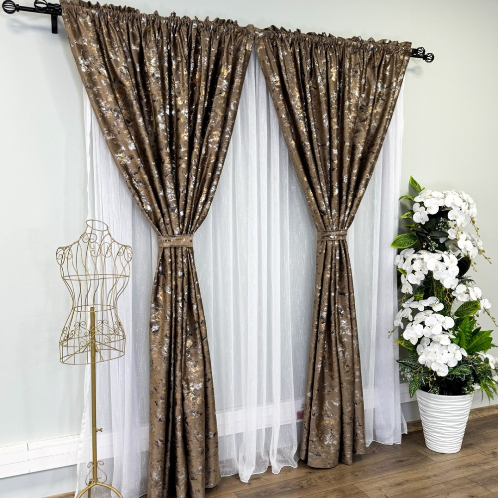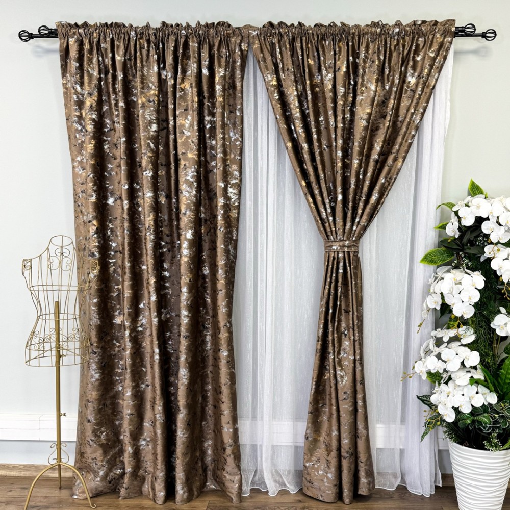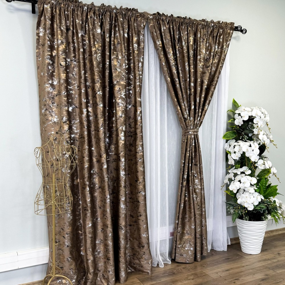 Aceste draperii nu sunt doar un element de decor, ci și o declarație a bunului gust și a stilului sofisticat al proprietarului. Cu o astfel de alegere, încăperea devine cu adevărat remarcabilă, transformând orice spațiu într-un sanctuar al luxului și al eleganței.