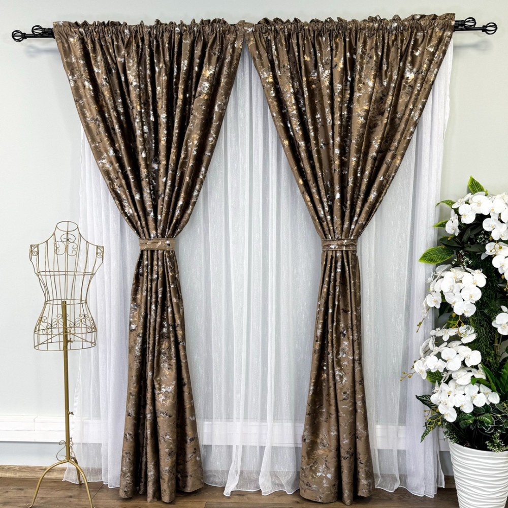 Set 2 Draperii Catifea Nikko cu insertii aurii - 2m latime x 2.50m inaltime x Tiv lat, Maro - V7, CumparaMisim, cod produs: CRDs4a