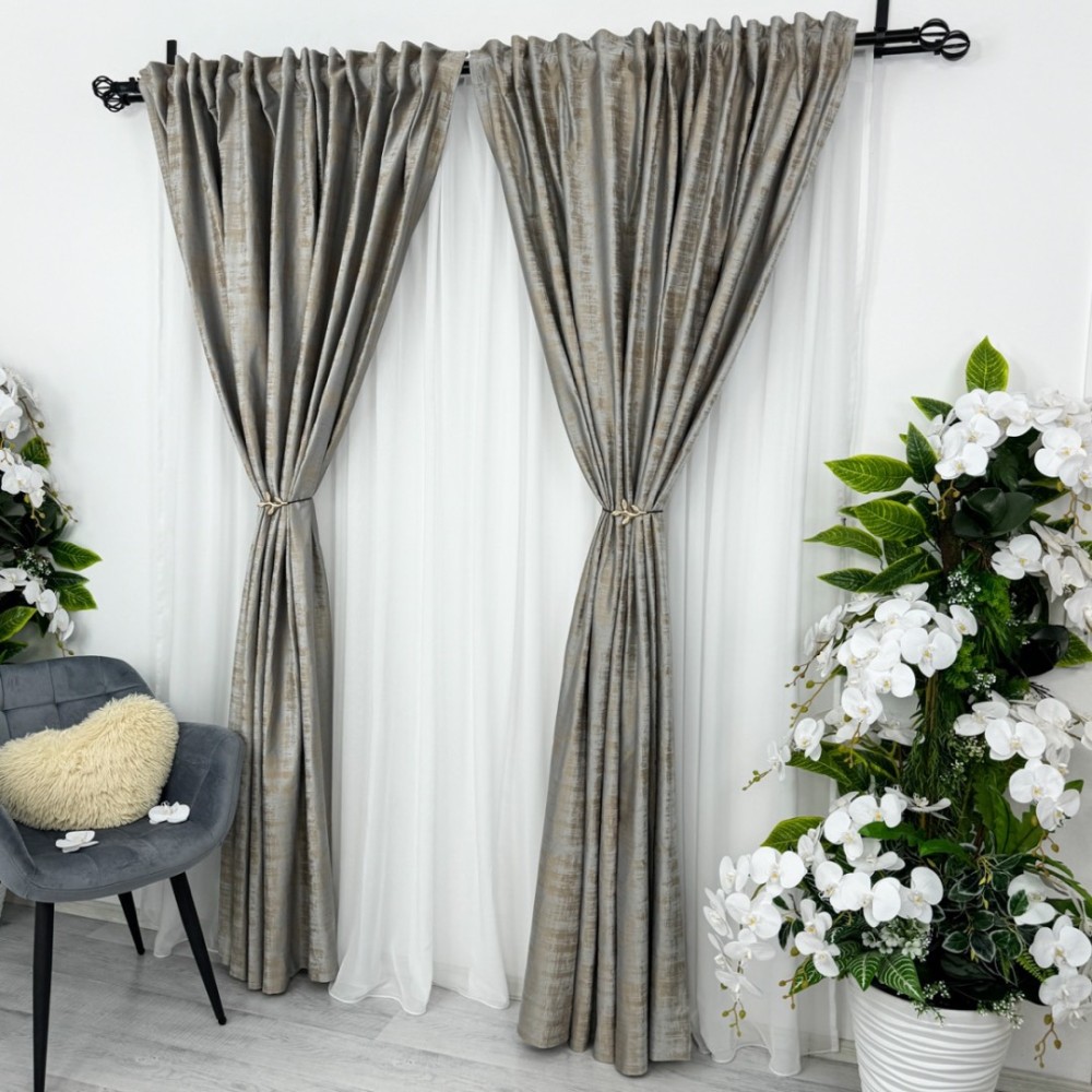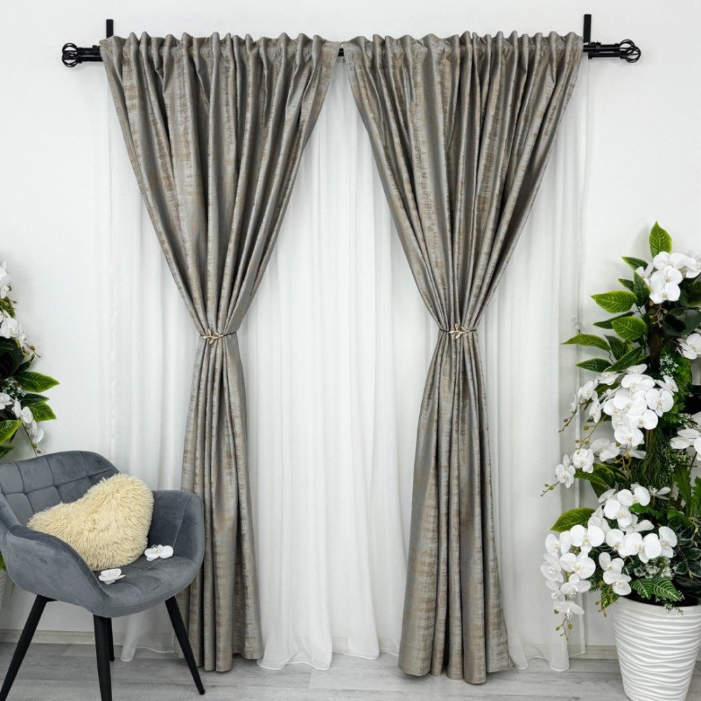 Folosim materiale de înaltă calitate, cu un aspect satinat luxos, care adaugă un plus de strălucire și rafinament oricărei încăperi. Textura fină și moale a acestor draperii încântă simțurile și adaugă o notă de eleganță și sofisticare în designul interior.