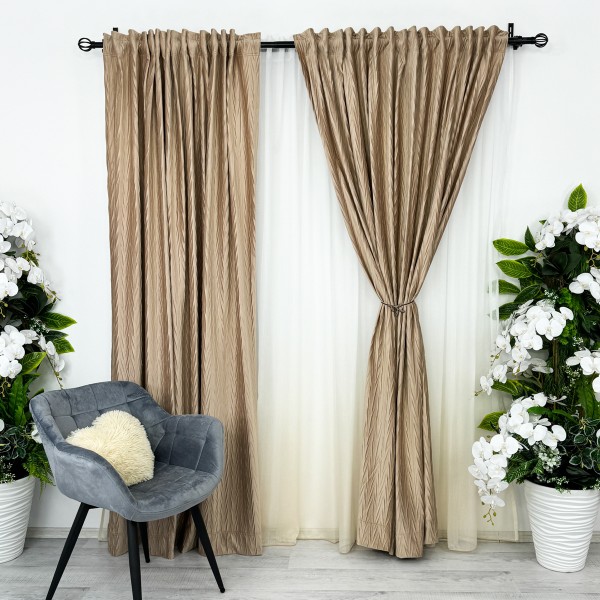 Set 2 Draperii din Catifea Plisata cu opacitate ridicata -2m latime x 2.32m inaltime , Rejansa pt. bara , Bej gold, CumparaMisim, cod produs: BDRs102A