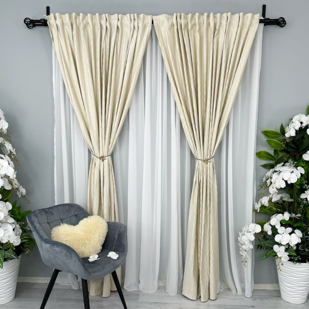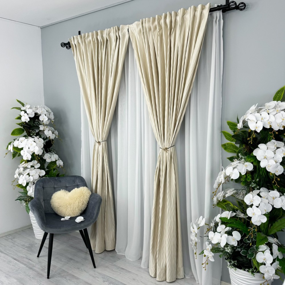 Set 2 draperii din Catifea Plisata cu opacitate ridicata, Crem - 2m latime x232cm, cu rejansa pentru bara, CumparaMisim, cod produs: BDRs109A