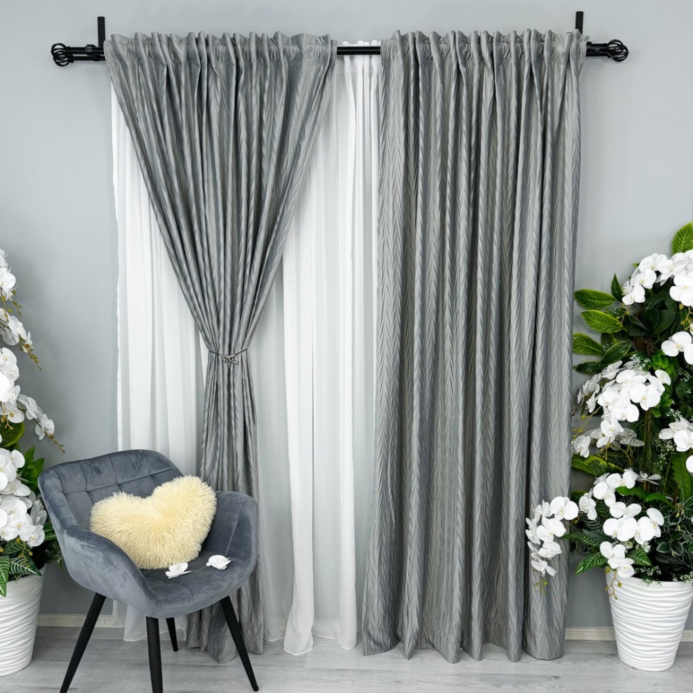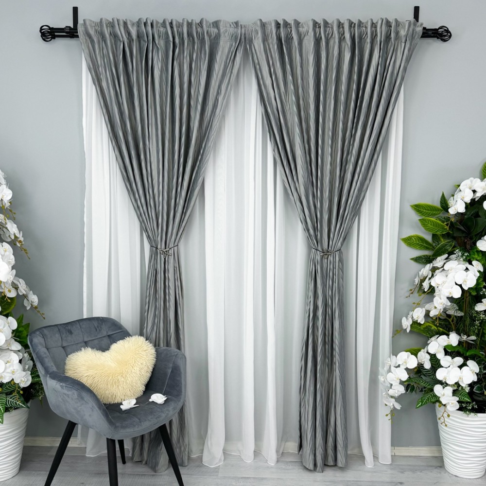 Set 2 draperii din Catifea Plisata cu opacitate ridicata, Gri deschis, 200cm x 232cm , Rejansa pentru bara, CumparaMisim, cod produs: BDRs108A