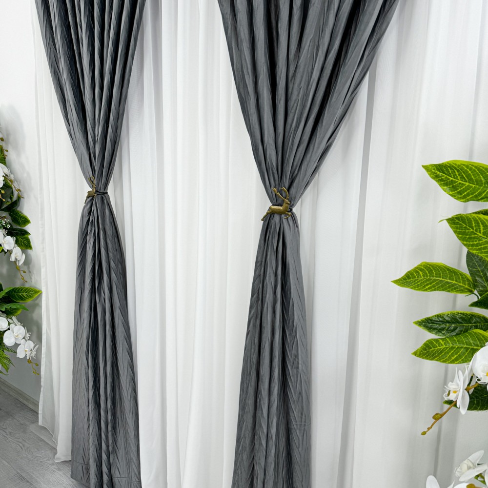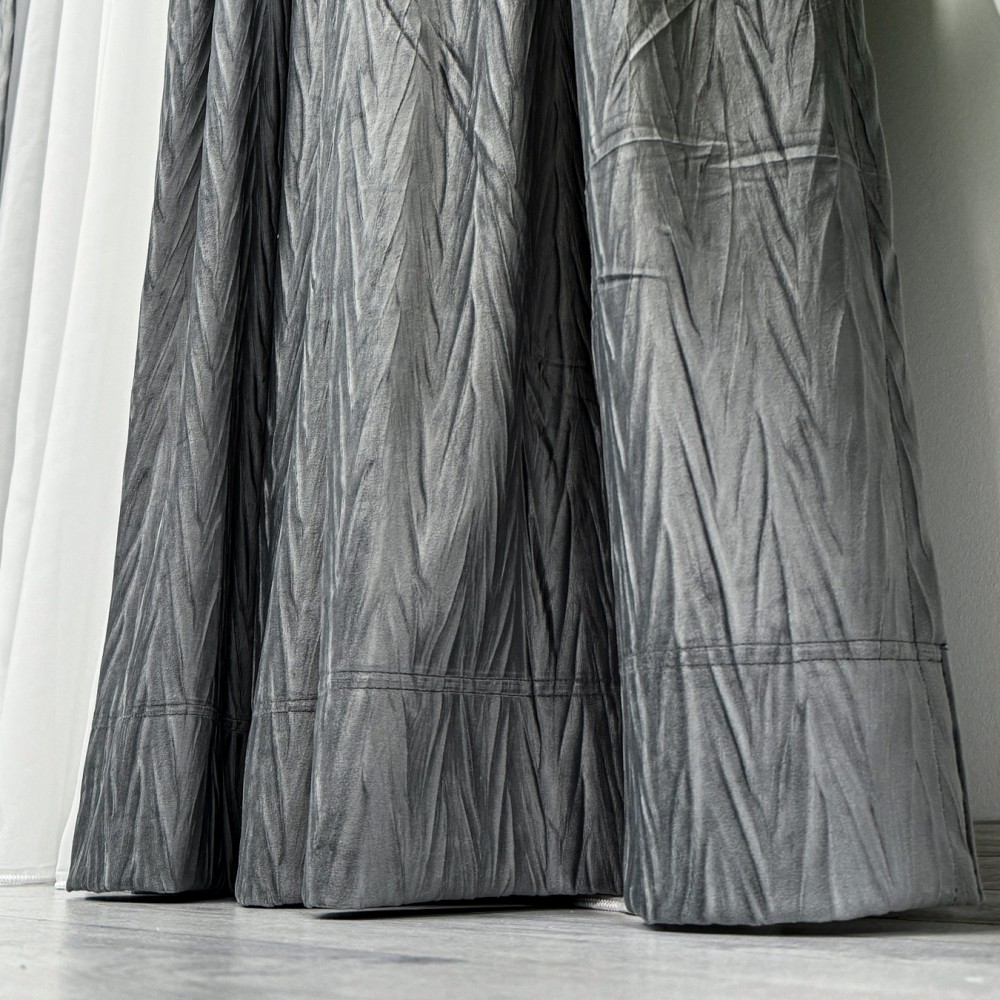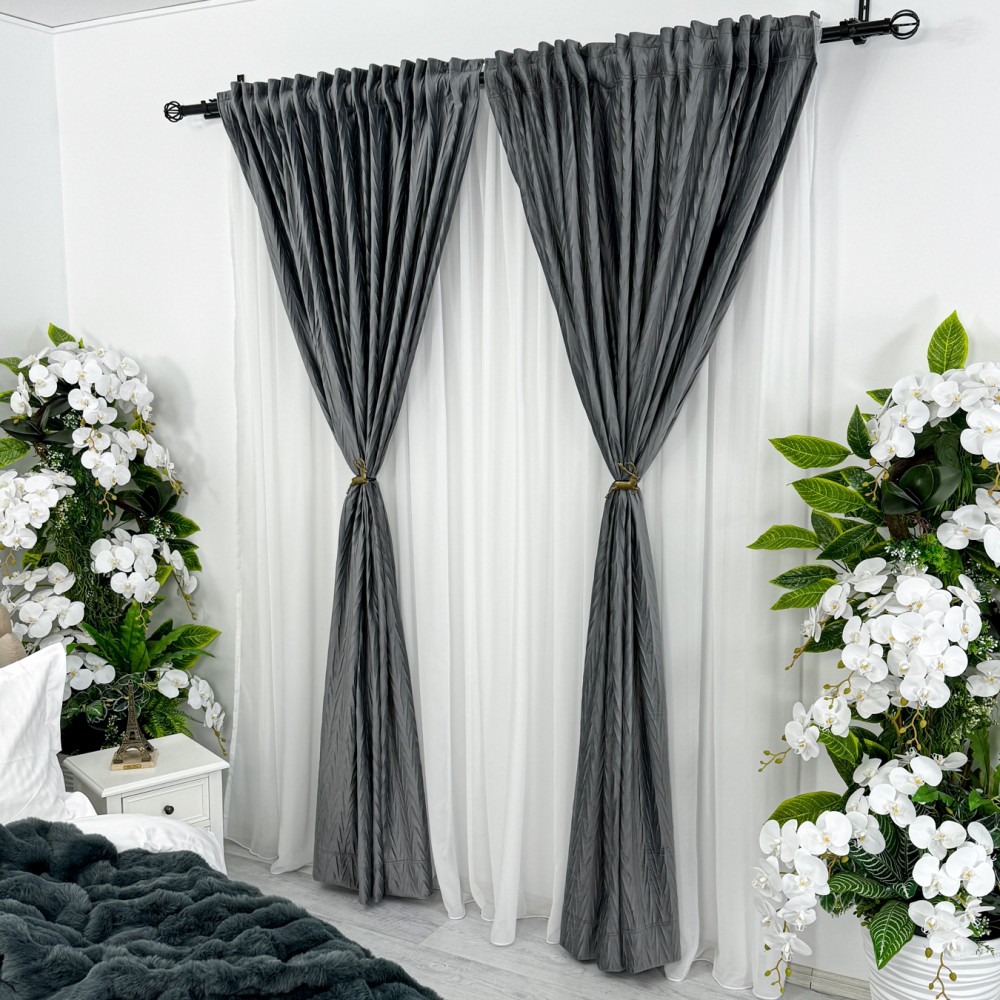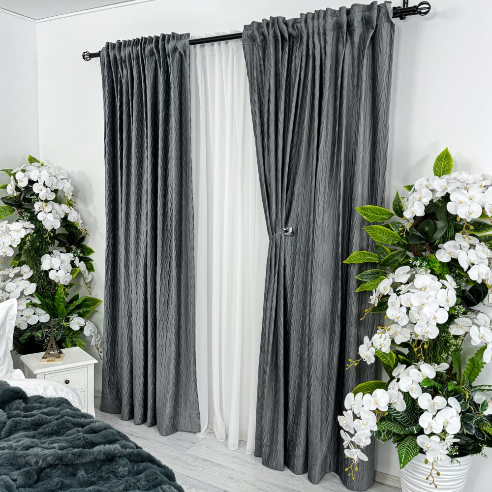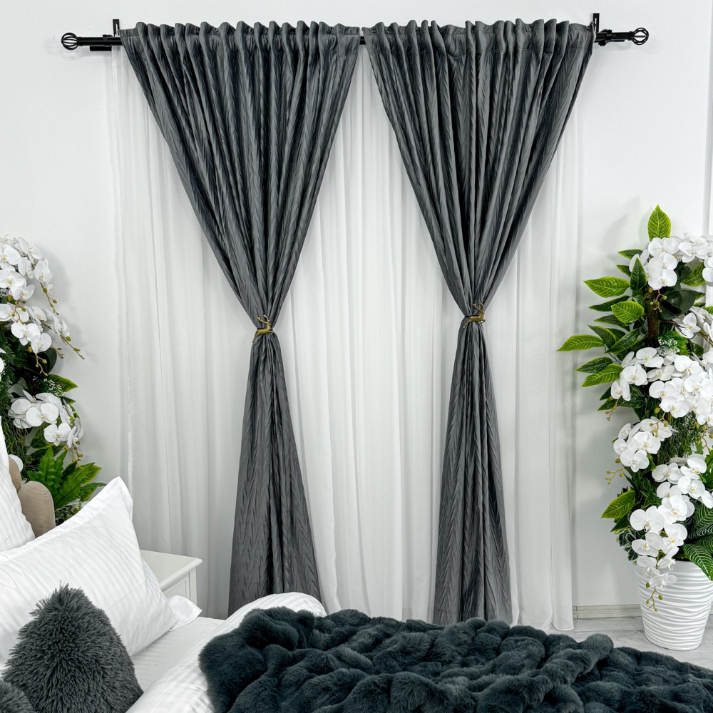 Set 2 Draperii din Catifea Plisata cu opacitate ridicata, Gri inchis, 200cm x 235cm, Rejansa pentru bara, CumparaMisim, cod produs: BDRs101C