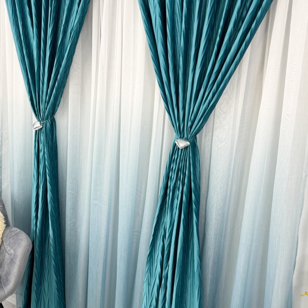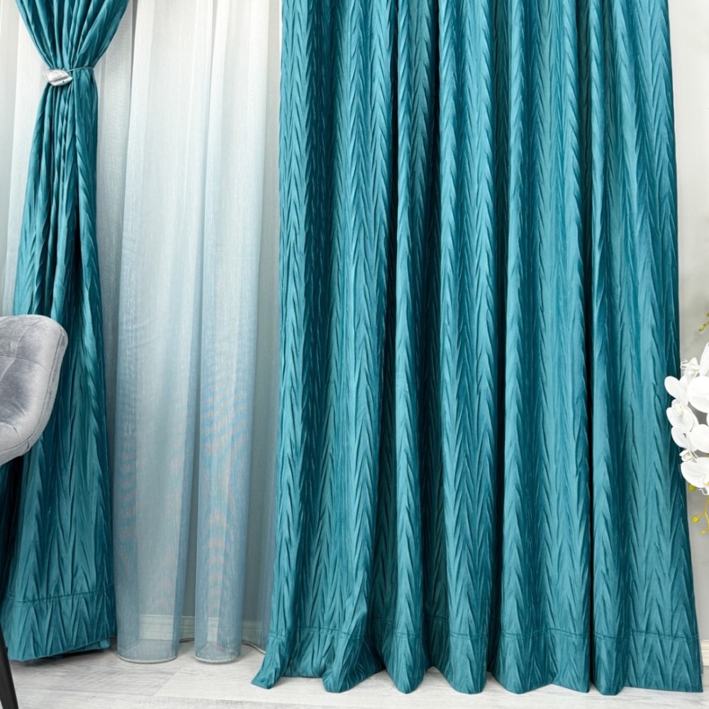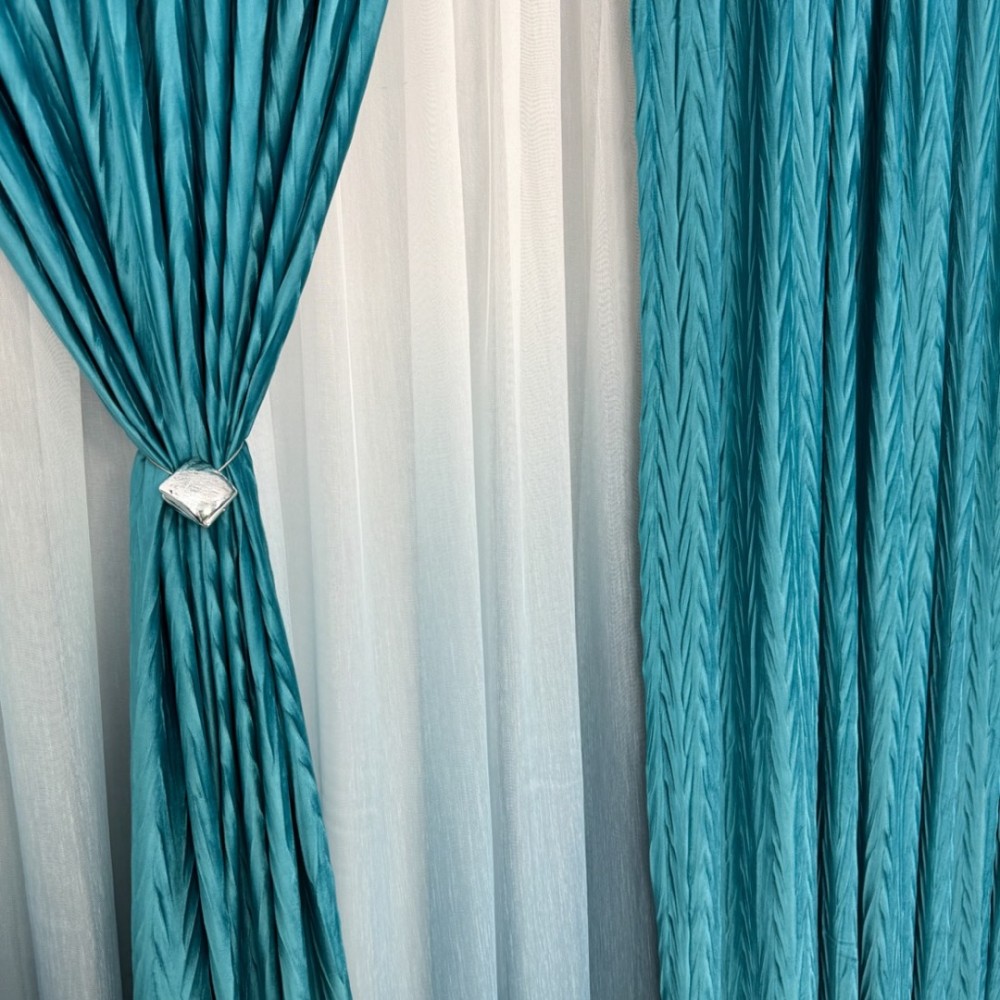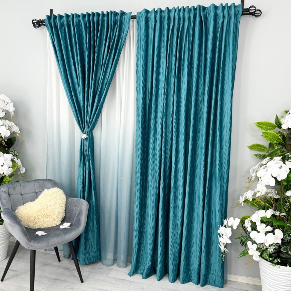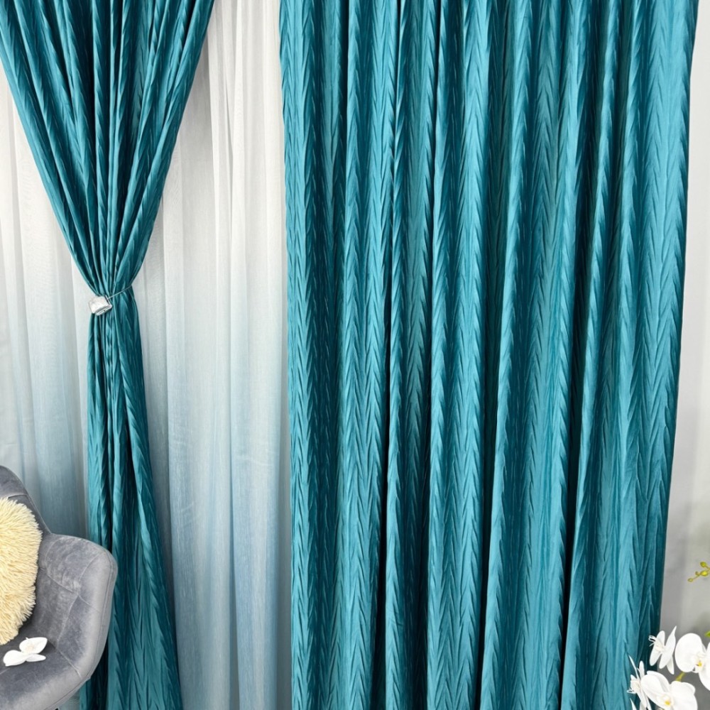Set 2 Draperii din Catifea Plisata cu opacitate ridicata, Turquoise, 200cm x 232cm , Rejansa pentru bara, CumparaMisim, cod produs: BDRs106B