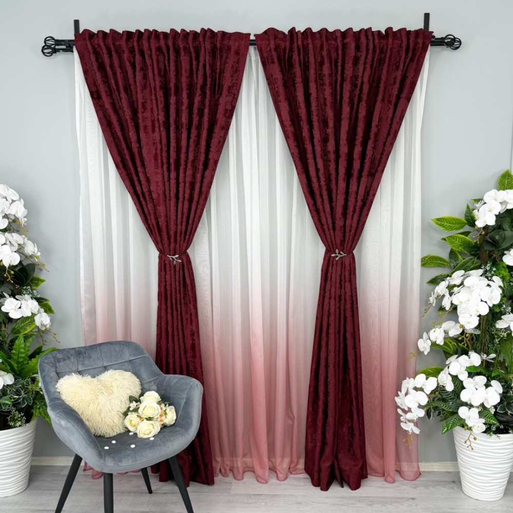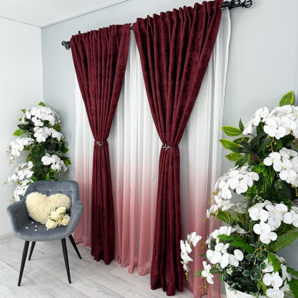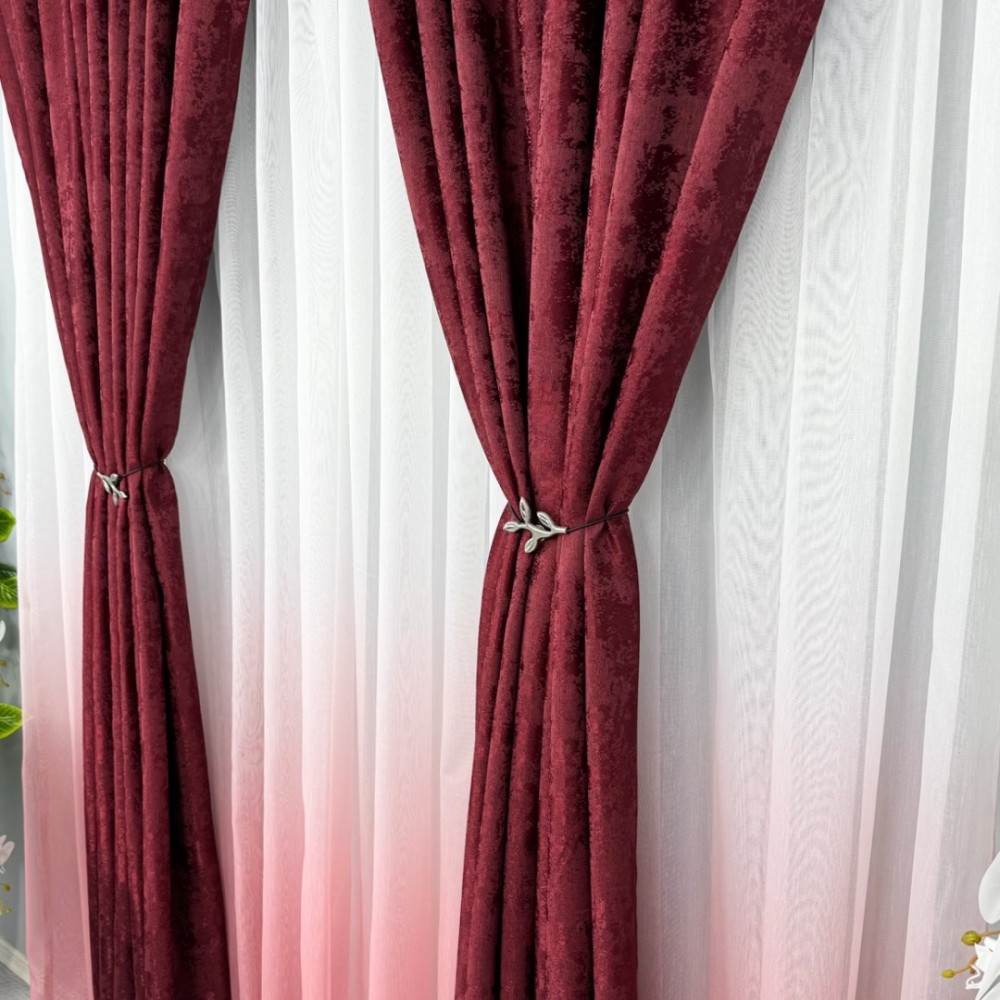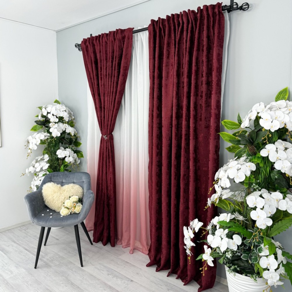 Set 2 Draperii din Jacquard model Nisip, Visiniu, latime 1.4m x inaltime 2m, cu rejansa pt sina, CumparaMisim, cod produs: BDRs200a