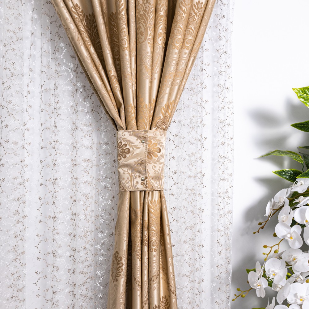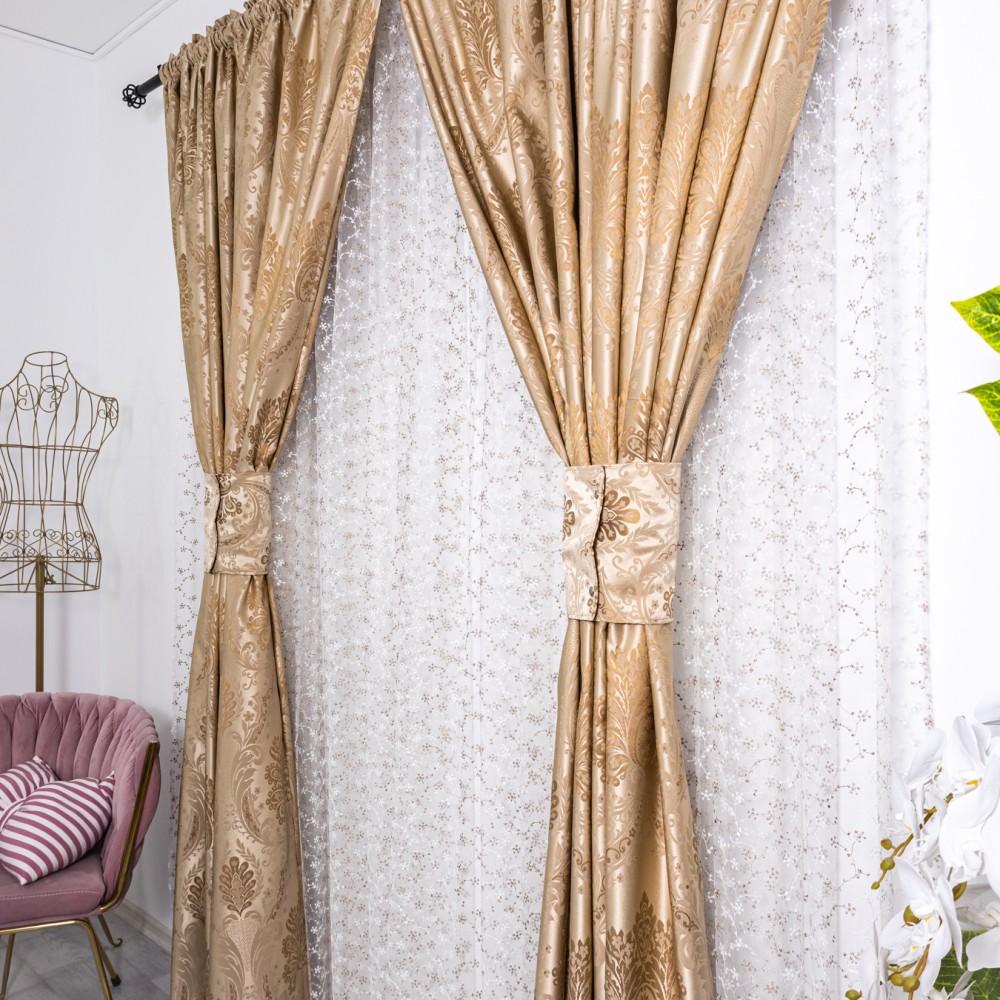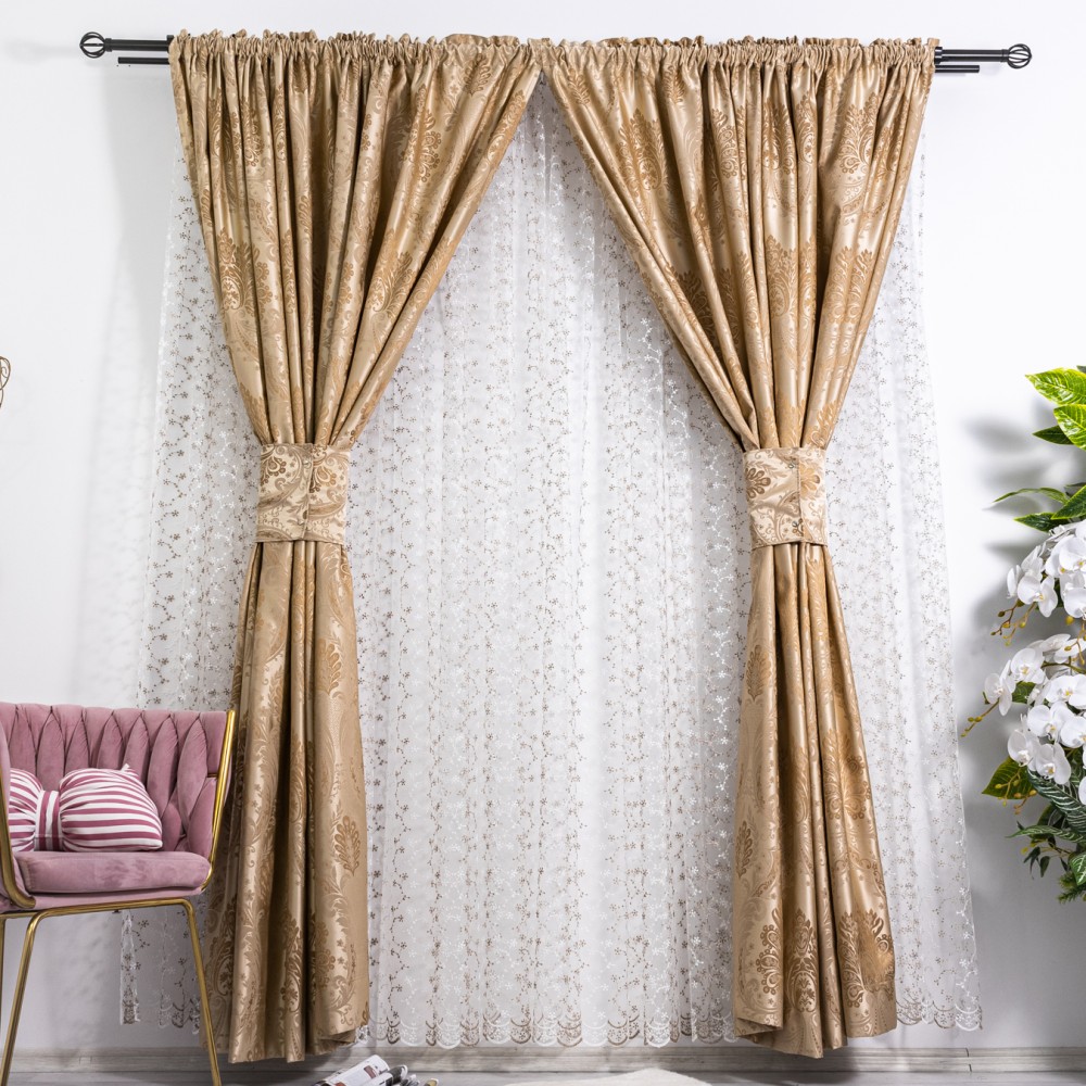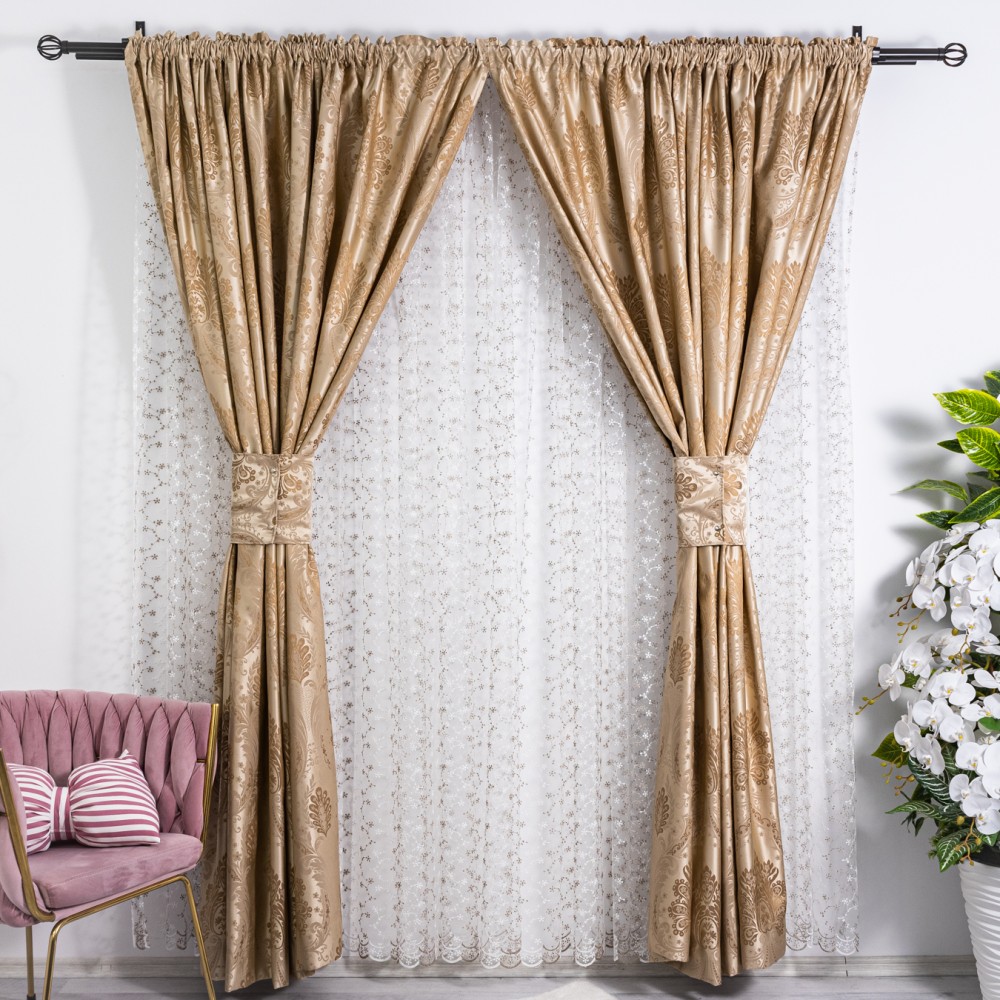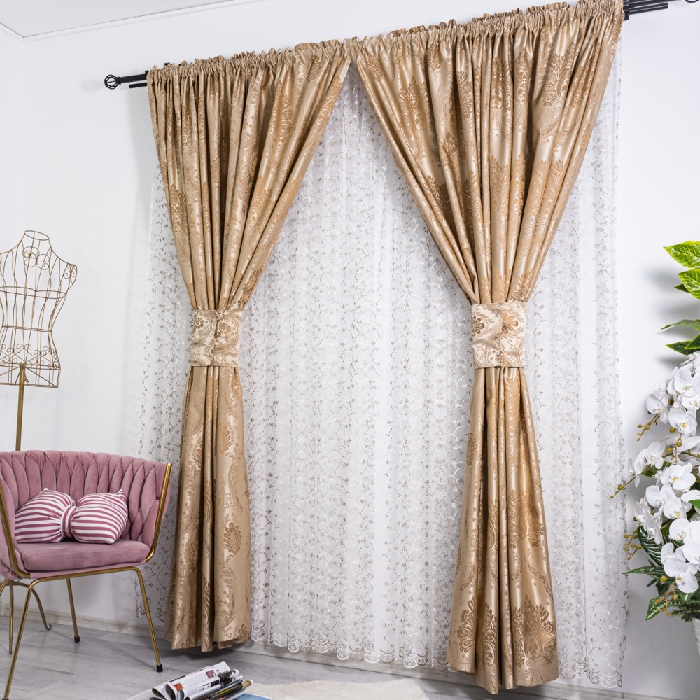 Set 2 draperii din Jacquard Satinat, 100x230cm, cu rejansa pentru sina, Bej Gold, CumparaMisim, cod produs: DRP304a