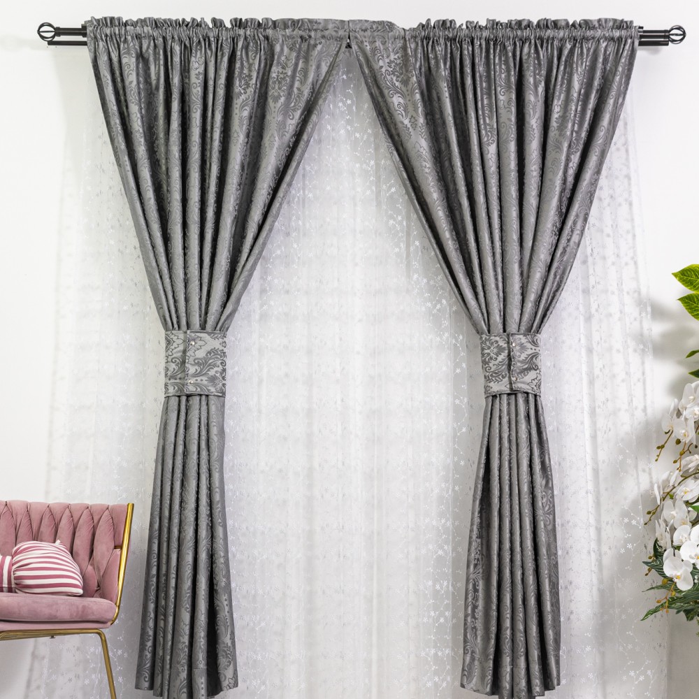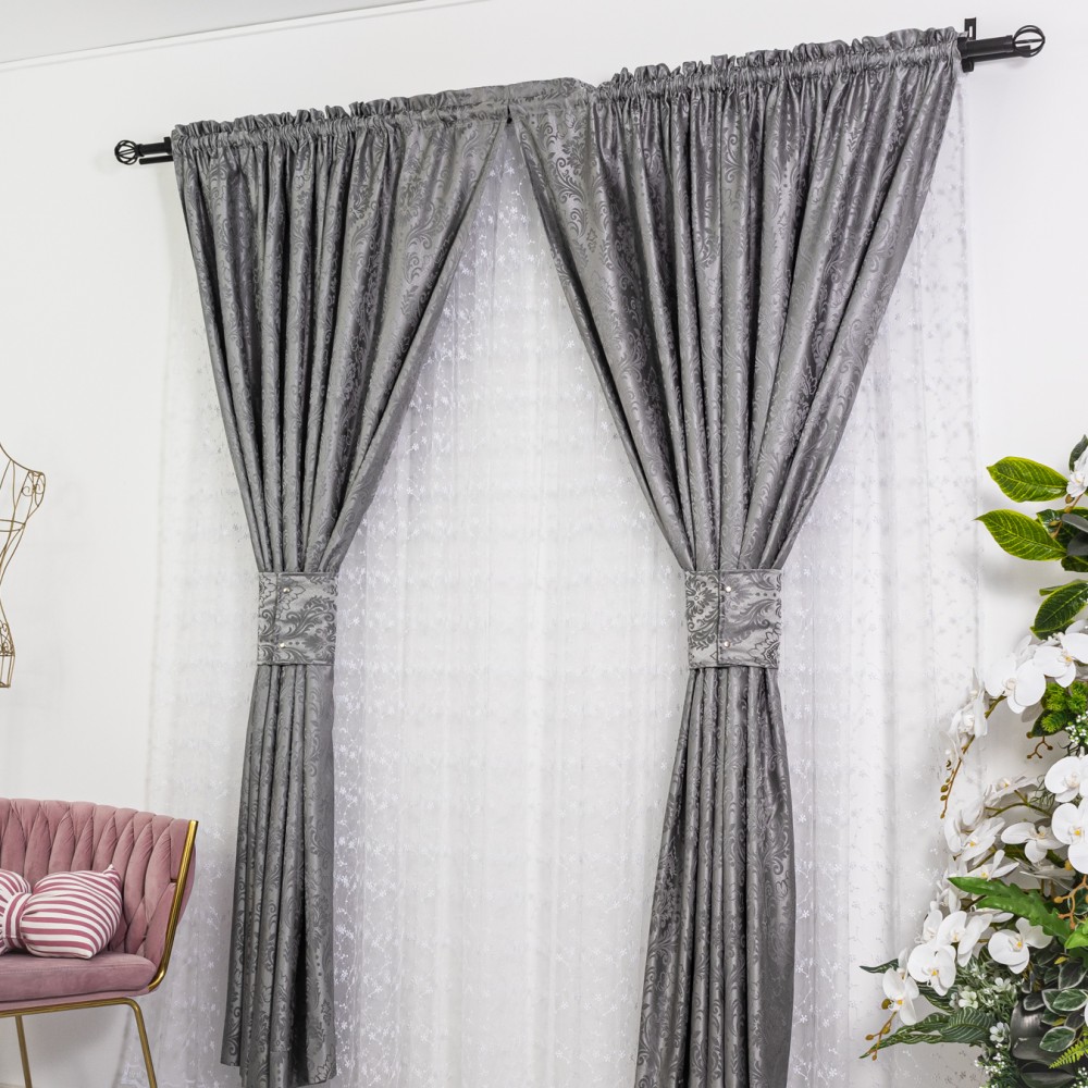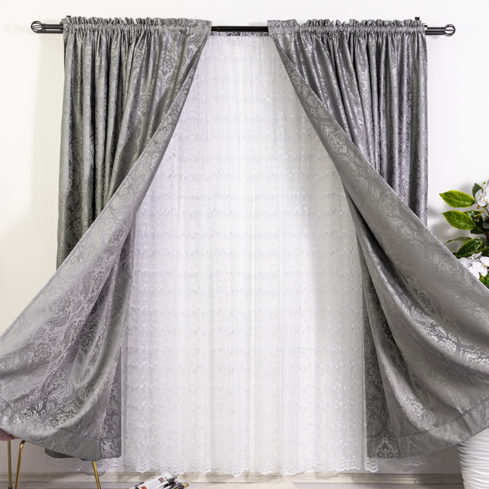 Set 2 draperii din Jacquard Satinat, 150x220cm, cu rejansa pentru sina, Gri, CumparaMisim, cod produs: DRP308a