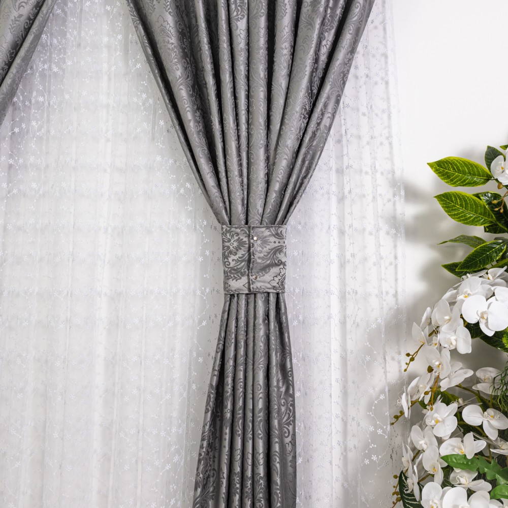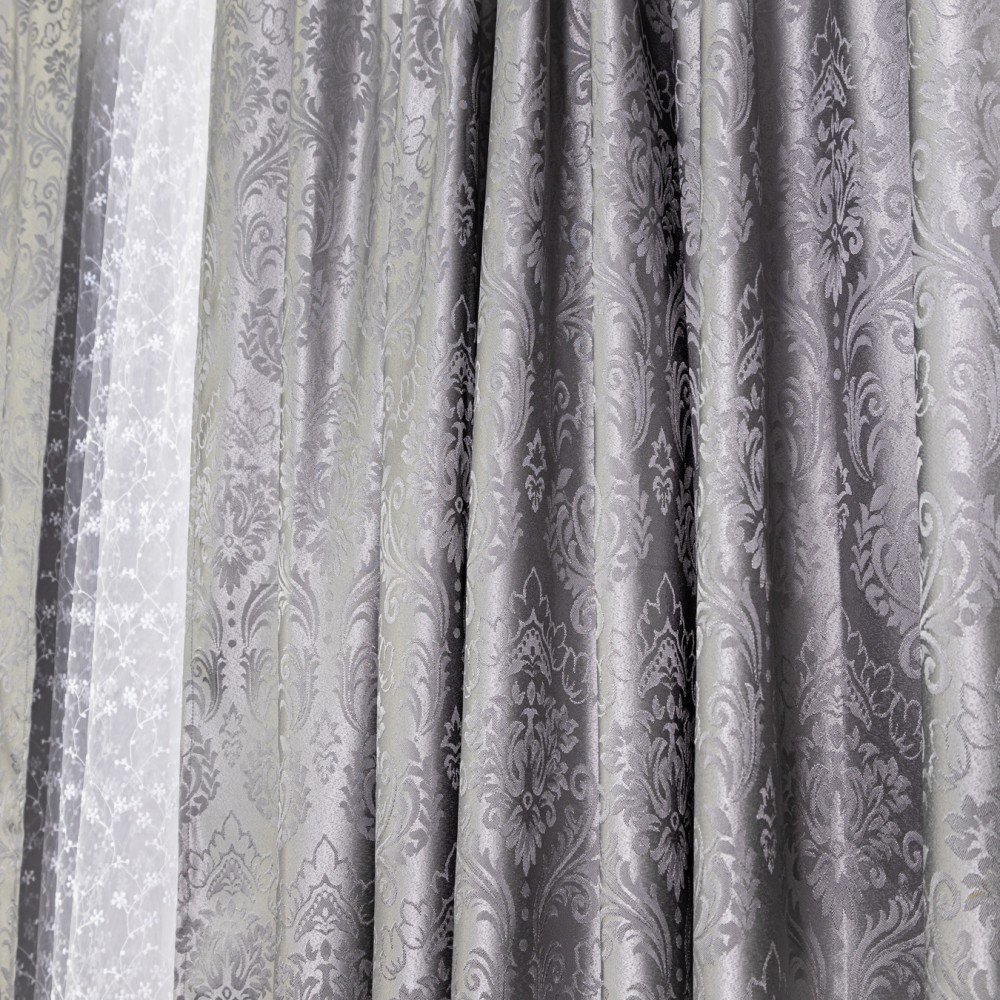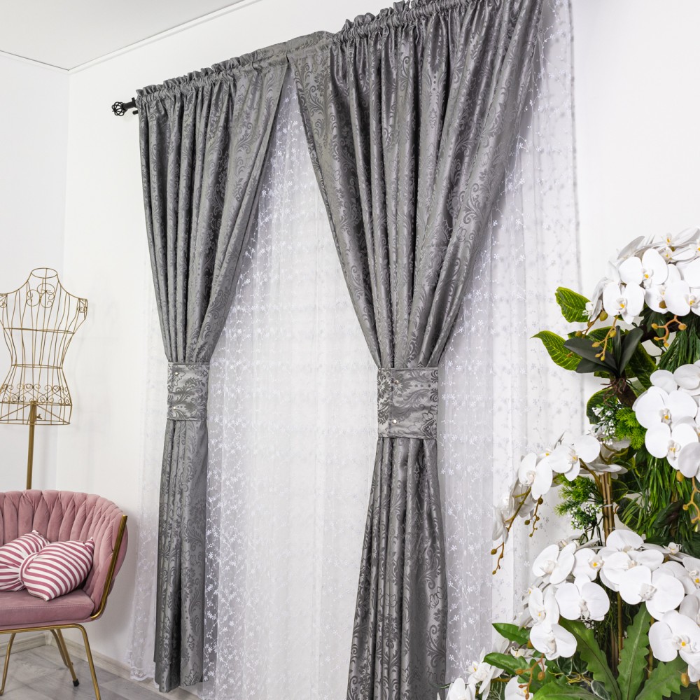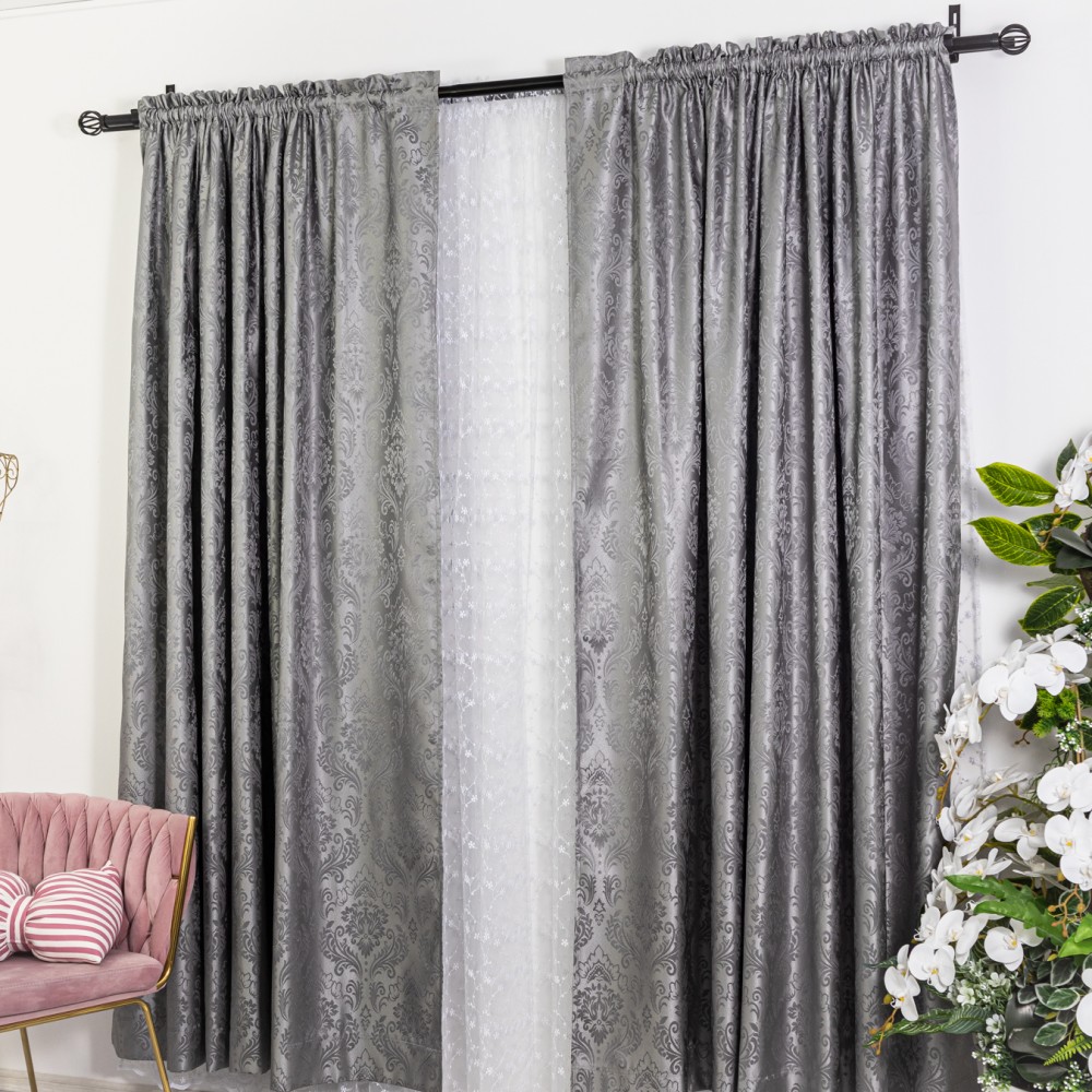 Set 2 draperii din Jacquard Satinat, 150x220cm, cu rejansa pentru sina, Gri, CumparaMisim, cod produs: DRP308a