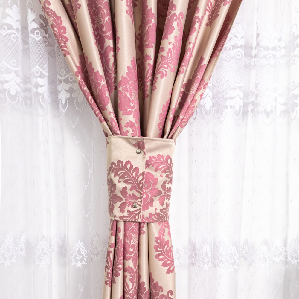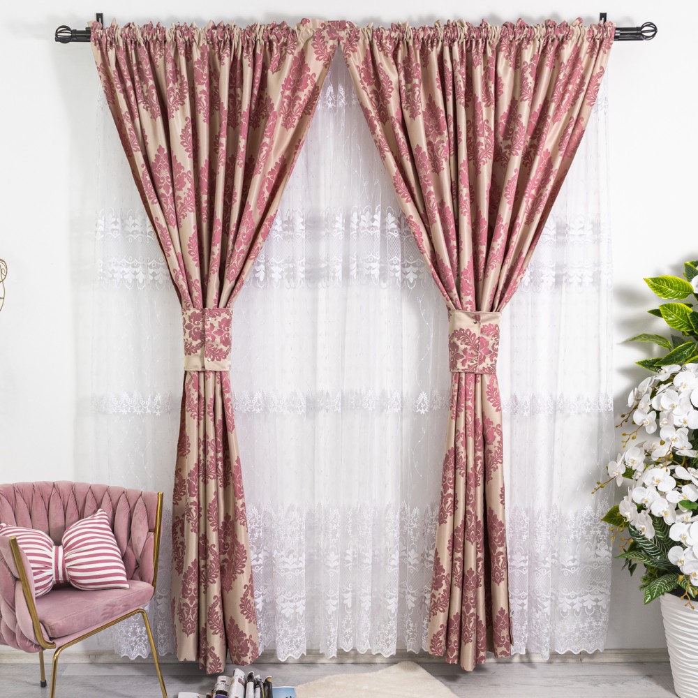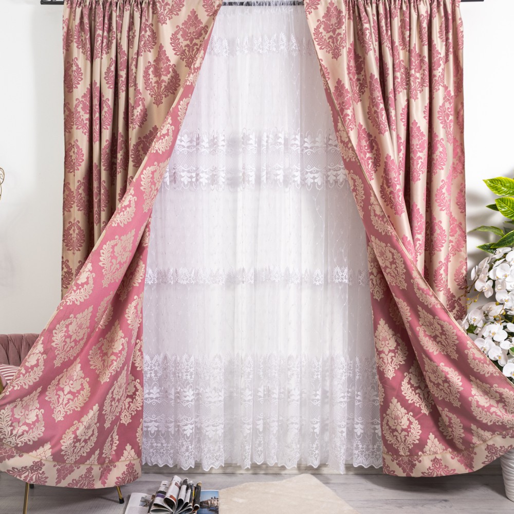 Set 2 Draperii din Jacquard Satinat -200cm x 232cm ,Tiv lat , Bej - Roz, CumparaMisim, cod produs: DRPs300A