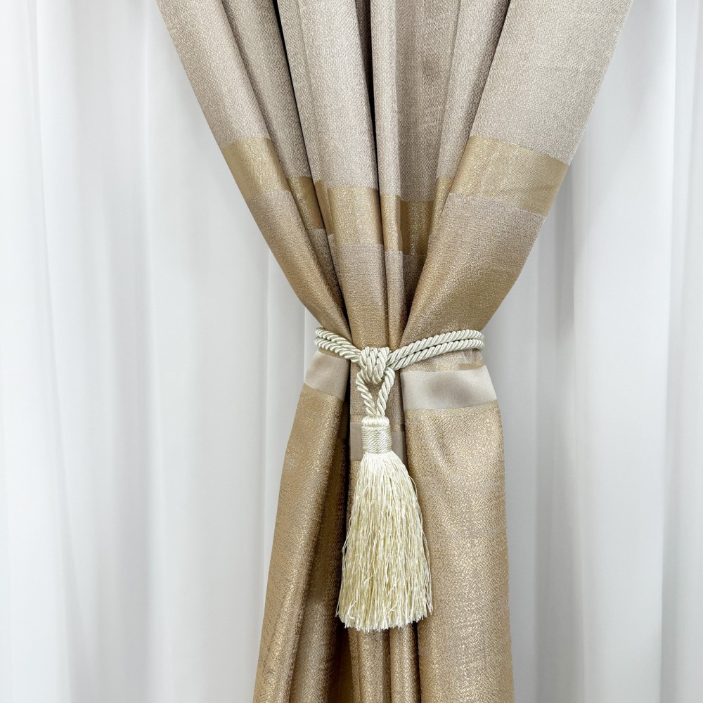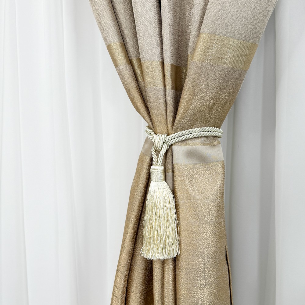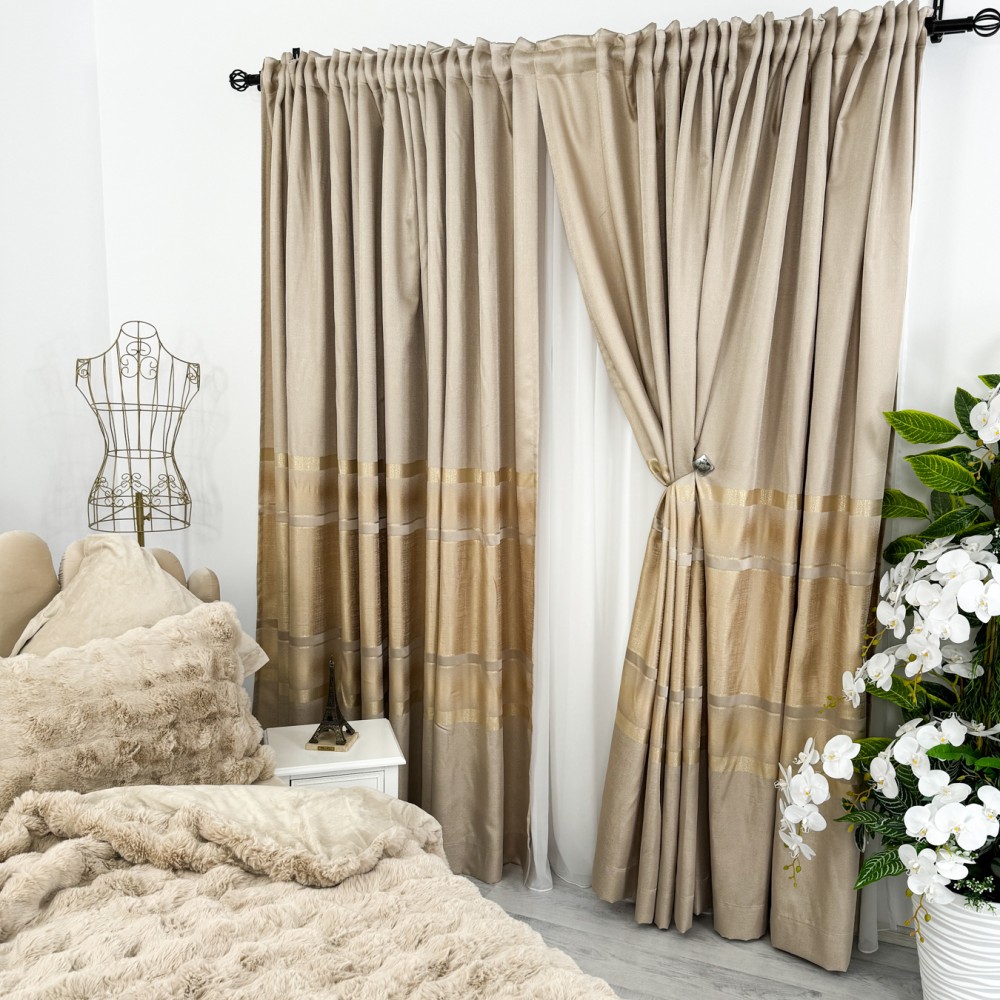 Set 2 Draperii Elite, tip panou 300cm x 232cm, rejansa pt bara, Bej cu Auriu, CumparaMisim, cod produs: CSR-DRs15A