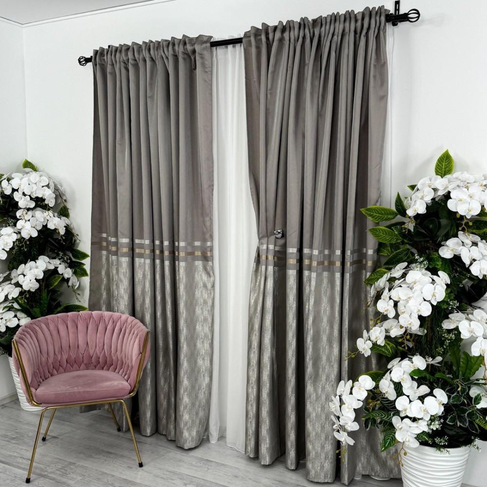 Ceea ce face draperiile cu adevărat remarcabile sunt detaliile aurii. Aceste insertii metalizate adaugă un element de strălucire și glamour, creând un contrast elegant cu textura mată a materialului. Fie că sunt plasate într-un living, într-un dormitor sau într-o sală de mese, draperiile cu insertii aurii atrag atenția și conferă o notă de opulență.