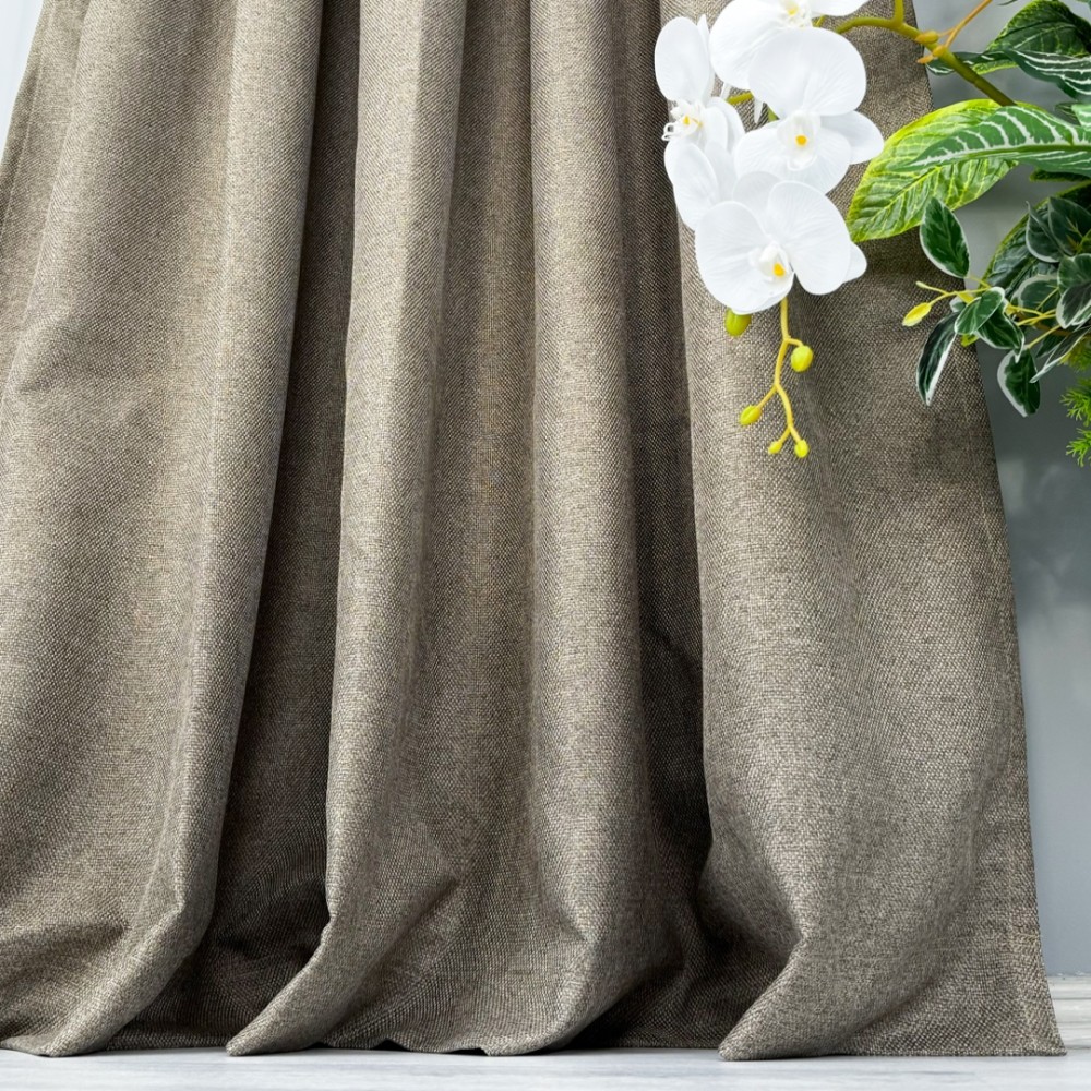 1. Textură tip sac: Această draperie este confecționată dintr-un material cu textură tip sac, care oferă un aspect deosebit și o senzație plăcută la atingere. Textura sa unică adaugă o notă de originalitate și rafinament în orice încăpere.